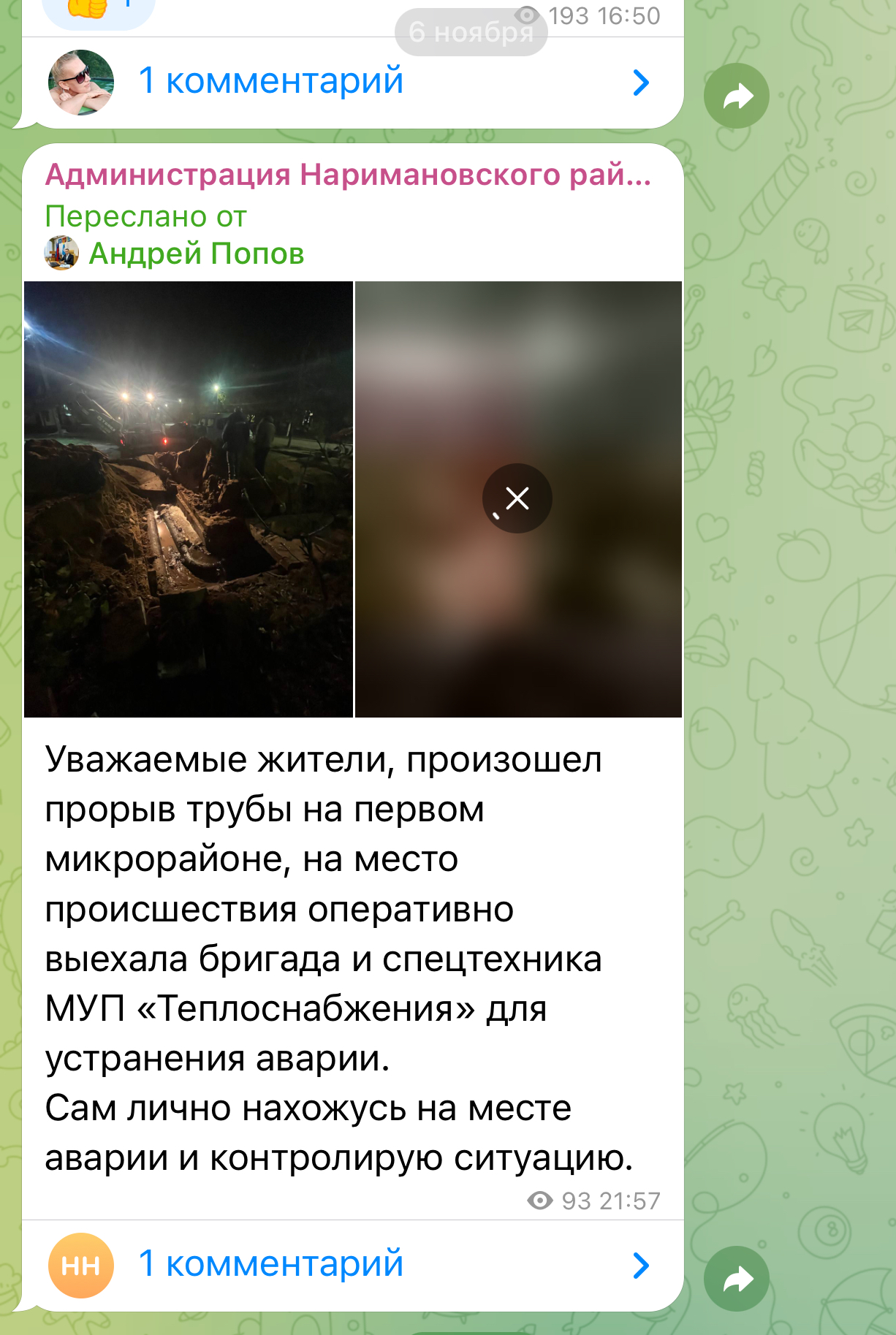 Накануне глава Наримановского района Дмитрий Курьянов сообщил о старте отопительного сезона в райцентре. По словам чиновника, отопление подают поэтапно. Также коммунальные службы проверяют герметичность труб. В целом, фонтаны из кипятка накануне мы уже видели. Поэтому сети проверку не прошли. В связи с чем, слова Курьянова мы ставим под сомнение. Тем более, что жители Нариманова то и дело присылают в нашу редакцию самые жуткие кадры. «Сейчас управляющие компании проводят запуск отопления в жилые дома. После подачи воды на магистраль, в которой не были произведены работы, в некоторых местах произошли порывы, но сейчас их устранили», - отметил Курьянов. К сожалению, все не так радужно. После столь противоречивого заявления в городе произошло не менее двух коммунальных аварий: Из-за практически полного отсутствия отопления детские сады и школы перестали принимать детей. Есть риск заболеть. Вместе с тем, на протяжении двух дней школьники буквально замерзали в своих классах. Больше мучить ребят не хотят. И когда юные астраханцы вернутся на учебу - вопрос. «Покажите хоть один объект в нашем Нариманове, где стартовал отопительный сезон? Пусконаладочные работы должны были проводиться до конца октября, а не 5 ноября. Герметичность труб мы тоже увидели и оценили, вчерашние фонтаны и порывы показали всю готовность. Нам сколько ждать еще тепла? Сады и школы уже закрыты, там ледник. Дети все уже заболевают, так как постоянно переохлаждаются. Дома проводка не выдерживает такую нагрузку на сеть, обогреватели не справляются с обогревом квартиры. Появилась плесень и сырость. А у них, вон, оказывается, все хорошо и налажено, все работает в штатном режиме, пошел отопительный сезон», - отметила астраханка Оксана Б. Вместо труб горячая вода выливается на улицу, топит подвалы, подмывает фундамент и скапливается в люках. Местные жители переживают, что совсем скоро дома могут рухнуть. И тогда за отопительный сезон, в целом, можно уже не переживать. Такой был план у администрации? «Вот он - отличный старт отопительного сезона. Кто не знает, чтобы в девятиэтажках было отопление, на входе в дом должно быть давление 6 килограмм, а никак не 4», - отмечает Елена Е. Не устанем напоминать о том, что на реконструкцию системы теплоснабжения выделили практически 1 миллиард рублей. Но этих денег, судя по всему, не хватает, раз специалисты так долго и неохотно тратятся. Астраханцы заверили, что работать начали совершенно недавно. Хотя раскопали весь город еще зимой, да и прошлый отопительный сезон явно не задался. Поэтому граждане вынуждены в холода замерзать в своих квартирах и ставить тепловые пушки, обогреватели. В противном случае приходится болеть и тратить баснословные деньги на лекарства. «Наши местные инвалиды, пенсионеры могут просто не пережить зиму. В прошлом году все болели, покупали лекарства, включали пушки. Электричество скакало, сил не было. Сейчас ситуация повторяется, очень холодной ночью. Дети тоже болеют, бедненькие», - рассказывает очевидец Надежда И. Ситуация ужасает. Конца и края нет проблеме. И самое ужасное в этой истории, что при очевидных проблемах местные чиновники заявляют о старте отопительного сезона без всякого зазрения совести. Неужели астраханцев принимают за дураков? Ну и непонятно в этой истории, знает ли губернатор Астраханской облас