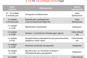 Библиотеки приглашают астраханцев на единый день краеведения08 ноября 2025 года, 10:30