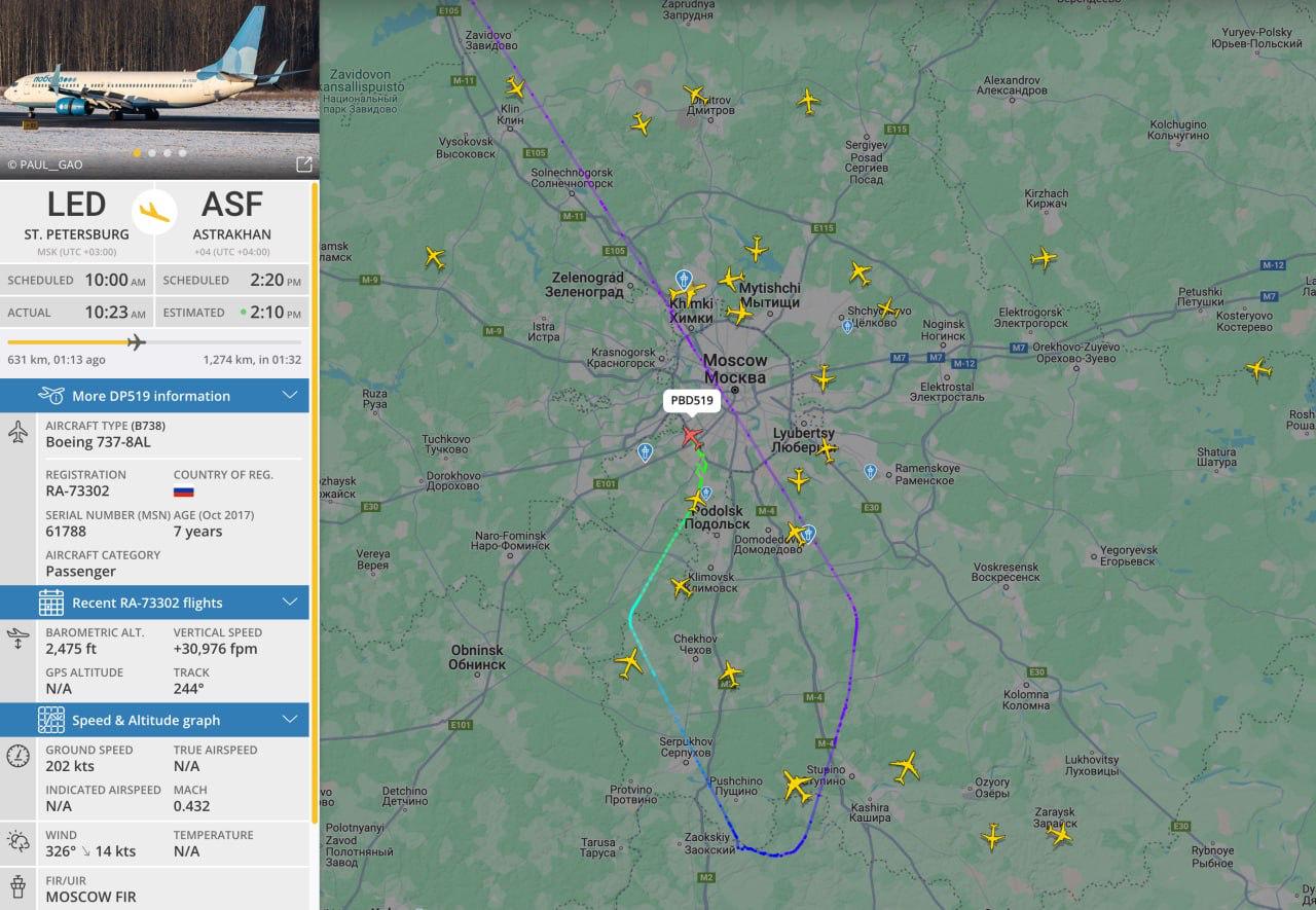 Летевший из Петербурга в Астрахань самолет совершил экстренную посадку во Внуково30 апреля 2025 года, 17:30