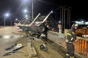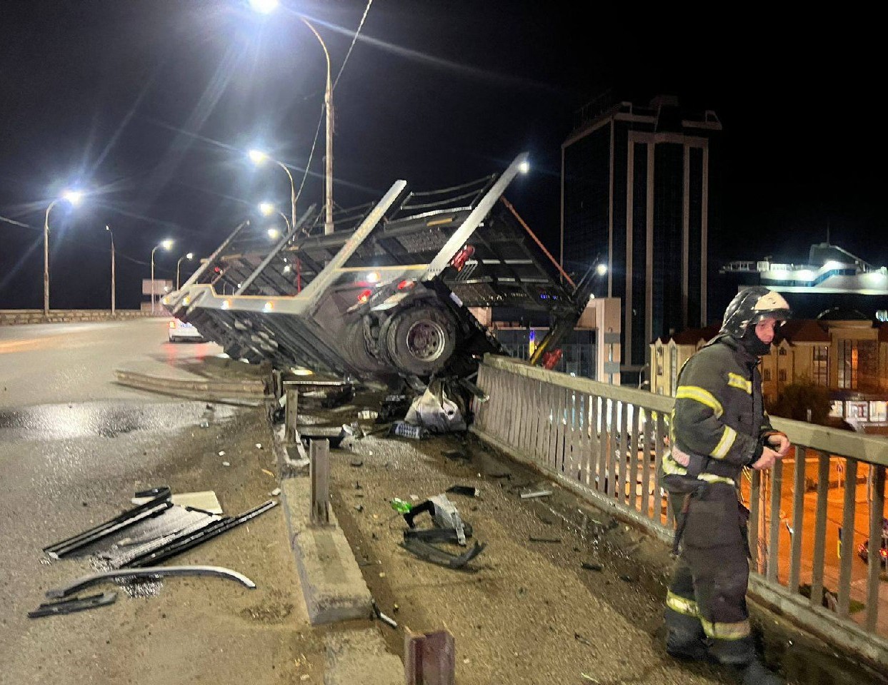 Ночью случилась авария на Новом мосту, которая шокировала астраханцев. С перил переправы свисал автовоз, который грозил рухнуть вниз. По данным УМВД области, 15 октября в 23:50 49-летний водитель «Вольво», переезжая через Новый мост, почувствовал недомогание и резко затормозил. Мужчина не справился с управлением, и автомобиль занесло. Большегруз повис на леерном ограждении моста. Спасатели, оперативно прибывшие на место происшествия, извлекли водителя из кабины авто, после осмотра бригады скорой медицинской помощи мужчина от госпитализации отказался. Госавтоинспекция проводит проверку, устанавливаются все обстоятельства аварии, сообщают в региональном УМВД.