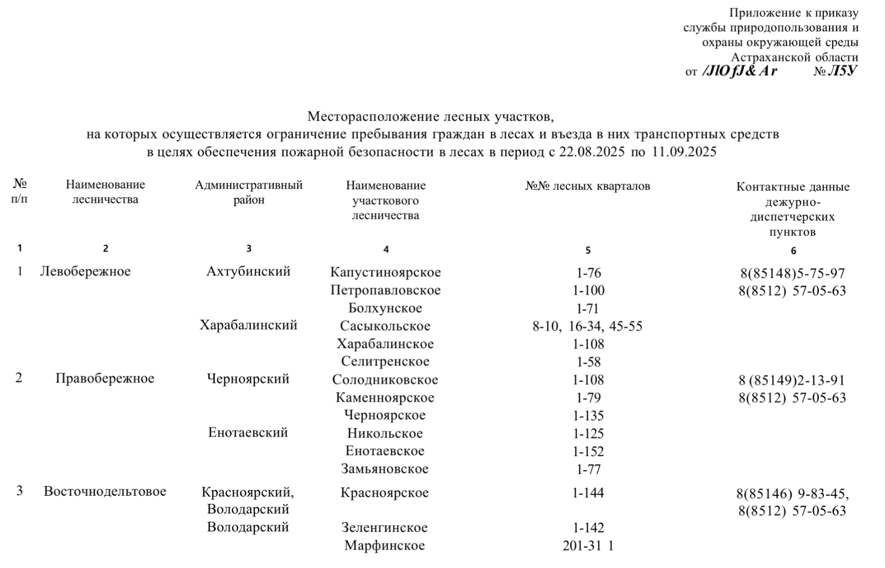 Для обеспечения пожарной безопасности в лесах на территории Астраханской области продлевается режим ограничения пребывания граждан в лесах и въезд в них транспортных средств. Также запрещается проведения в лесах определенных видов работ. Действовать ограничения (согласно новому распоряжению) будут с 22 августа по 11 сентября, на 21 день. Кроме того, в области сохраняется особый противопожарный режим (IV – V классы пожарной опасности). Он установлен с 29 мая по 1 октября. В это время на территории лесного фонда запрещено разводить костры, сжигать мусор, остатки стеблей злаков после уборки урожая, порубочные остатки, проводить все виды пожароопасных работ. При обнаружении возгорания в лесу или на прилегающих территориях необходимо сообщить на прямую линию лесной охраны 8(800)100‐94‐00 (звонок бесплатный) или по телефонам региональной диспетчерской службы лесного хозяйства 8(8512)57‐05‐63, 8(967)828‐59‐68 (круглосуточно). В Астраханской области продлен режим ограничения пребывания граждан в лесах