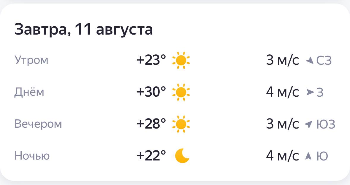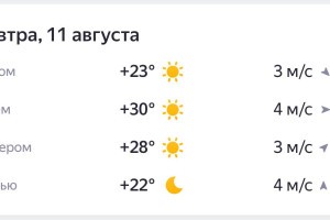 Лето продолжается, погода соответствует астраханскому августу. О прохладе и свежести остается только мечтать. Если верить прогнозам синоптиков, 11 августа днем воздух прогреется до 30 градусов тепла. Погода безоблачная, солнечная активность повышена. Ветер западный, 4 м/с. 11 августа православные чтят день рождения одного из самых почитаемых и любимых святых на Руси - Николая Чудотворца. В этот день традиционно посещают храм, молятся о детях и о благополучии в семье. Приметы в этот день гласят: стоит густой туман - будет хороший урожай овса, много орехов на деревьях - к сильным морозам зимой, нет урожая грибов - зима будет снежной, стоит теплая погода - к погожей, мягкой осени.