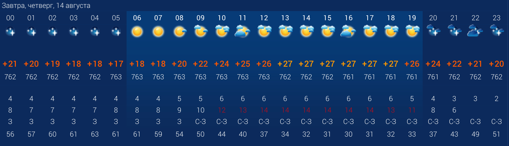 14 августа в городе будет чуть жарче, чем сегодня13 августа 2025 года, 21:50