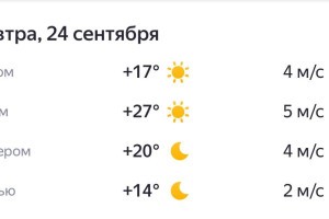 Теплый, солнечный и ясный день ожидает астраханцев в среду. Осадков, судя по обещаниям синоптиков, не предвидится. Воздух в Астрахани прогреется 24 сентября до 27 градусов, ветер будет незначительный - 5 м/с. Он будет дуть с юга. В народном календаре 24 сентября называли Федориными вечорками. В это время было принято квасить капусту. Приметы в этот день гласят: с утра выпала роса и быстро исчезла - к теплому дню, сильный туман - к затяжной сырой осени, ветер меняет направление несколько раз за день - к ненастью, гуси шумно кричат и тянутся на юг - к скорому похолоданию; паутина летит низко над землей - к дождям.