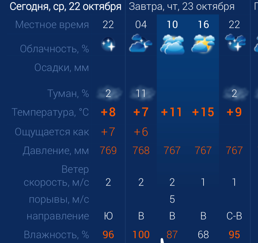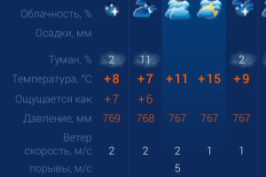 Завтра в Астрахани ожидается переменная облачность и достаточно приятная погода. Утром и ночью возможен туман. Утром температура воздуха в городе составит +11 градусов. Днем температура повысится до +15. К вечеру вновь похолодает до +9. Астраханцев ждет восточный ветер со скоростью 2-5 м/с. Атмосферное давление составит 767 мм рт. ст. Влажность воздуха в пределах нормы. На территории всего региона будет восточный ветер со скоростью 1-5 м/с. Температура воздуха ночью опустится до +8 градусов, а днем повысится до +15. Погодные приметы: Если туман опускается на землю - жди дождя или ненастья. Если солнце к закату словно «косится» и тускнеет, по ночам будет туман.