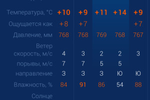 В пятницу в Астраханской области будет приятная погода - солнце и легкий ветер. Без осадков. Утром температура воздуха в городе составит +11 градусов. Днем температура повысится до +14. К вечеру похолодает до +9. Астраханцев ждет южный ветер со скоростью 2-5 м/с. Атмосферное давление составит 768 мм рт. ст. Влажность воздуха в пределах нормы. На территории всего региона будет западный ветер со скоростью 2-6 м/с. Температура воздуха ночью опустится до +7 градусов, а днем повысится до +15. Погодные приметы: Солнце в последний день октября предвещает теплую зиму. А вот если солнце за облаками скроется - к скорым морозам.