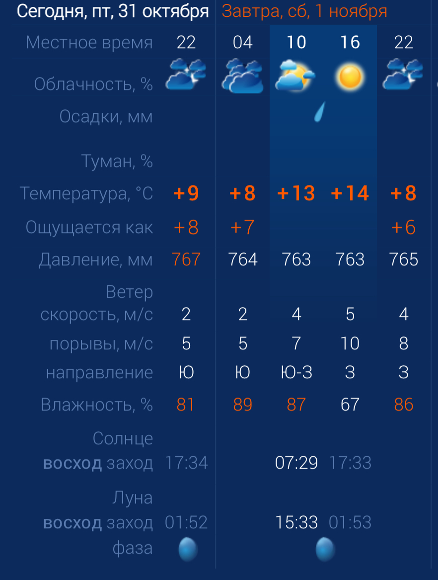 Начнется ноябрь в регионе с довольно странной погоды. Утром ожидается дождь, а вечером выглянет солнце. Утром 1 ноября температура воздуха в городе составит +13 градусов. Днем температура повысится до +14. К вечеру похолодает до +8. Астраханцев ждет западный ветер со скоростью 5-10 м/с. Атмосферное давление составит 763 мм рт. ст. Влажность воздуха в пределах нормы. На территории всего региона будет западный ветер со скоростью 5-8 м/с. Температура воздуха ночью опустится до +6 градусов, а днем повысится до +10. Погодные приметы: Ноябрь с дождя начался - жди похолодание. А вот если солнечная погода встретила заключительный месяц осени - к теплой зиме.