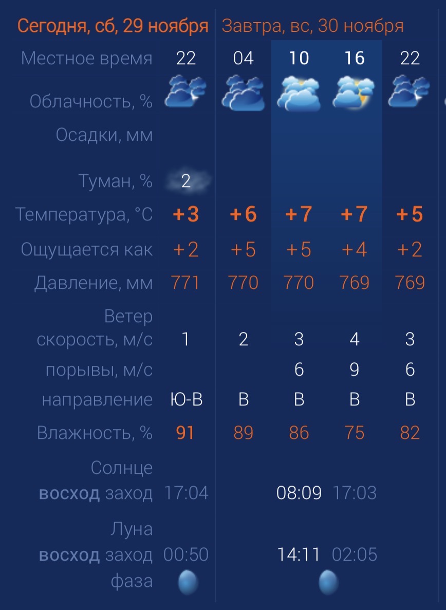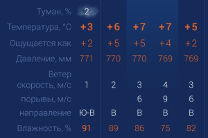 В воскресенье в Астраханской области будет облачно, без осадков. Утром температура воздуха в городе составит +7 градусов. Днем температура не изменится. К вечеру вновь похолодает до +5. Астраханцев ждет восточный ветер со скоростью 4-9 м/с. Атмосферное давление составит 769 мм рт. ст. Влажность воздуха выше нормы. На территории всего региона будет восточный ветер со скоростью 3-8 м/с. Температура воздуха ночью опустится до +1 градуса, а днем повысится до +7. Погодные приметы: Если туман не образуется, роса слабая или совсем не выпадает, возможны гроза и ливень. Морозный иней на траве - к дождю, деревья в инее - небо будет синее.