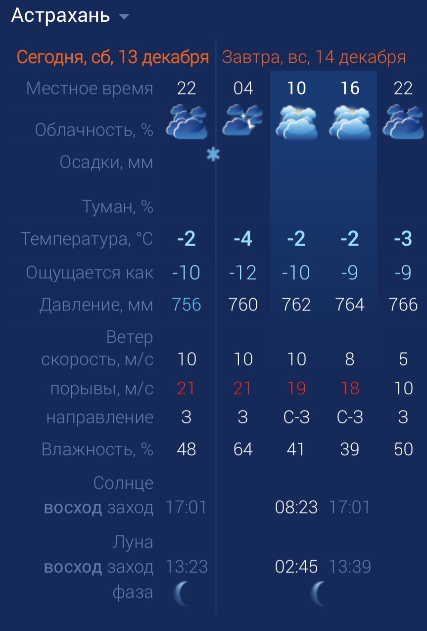 14 декабря в Астраханской области будет облачно и холодно13 декабря 2025 года, 19:40