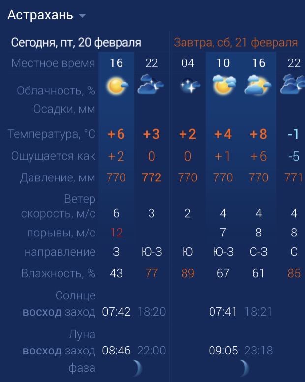 21 февраля в Астраханской области будет тепло и влажно20 февраля 2026 года, 20:40