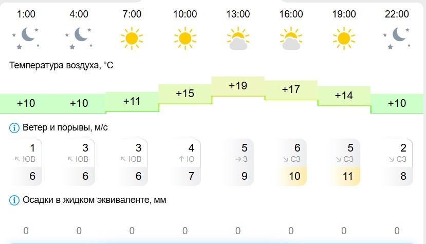 В Астрахани 27 апреля по-настоящему весенняя погода - день обещает быть теплым, солнечным и спокойным. Погода так и зашепчет: «Давай, прогуляйся! Хотя бы в обеденный перерыв». Утро, правда, начнется с прохлады - около +10 градусов. К 7 часам температура немного поднимется до +11, а уже к 10 утра воздух прогреется до +15. Днем станет еще комфортнее: к 13:00 столбики термометров покажут до +19 градусов - это будет самое теплое время суток. После обеда температура постепенно пойдет на спад: около +17 в 16:00, +14 к 19:00 и вновь около +10 градусов поздним вечером. Осадков не ожидается - весь день пройдет без дождя. Ветер будет умеренным: утром слабый, около 1-3 м/с, днем усилится до 5-6 м/с, а порывы могут достигать 10-11 м/с. Погодные приметы на 27 апреля:В народе считалось, что погода в этот день может подсказать, каким будет лето. Если 27 апреля тепло и ясно - стоит ждать хорошего урожая и сухого лета. Также обращали внимание на ветер: если он усиливается к вечеру, это может предвещать перемену погоды в ближайшие дни. А яркое солнце и безоблачное небо считались добрым знаком - к стабильному теплу.