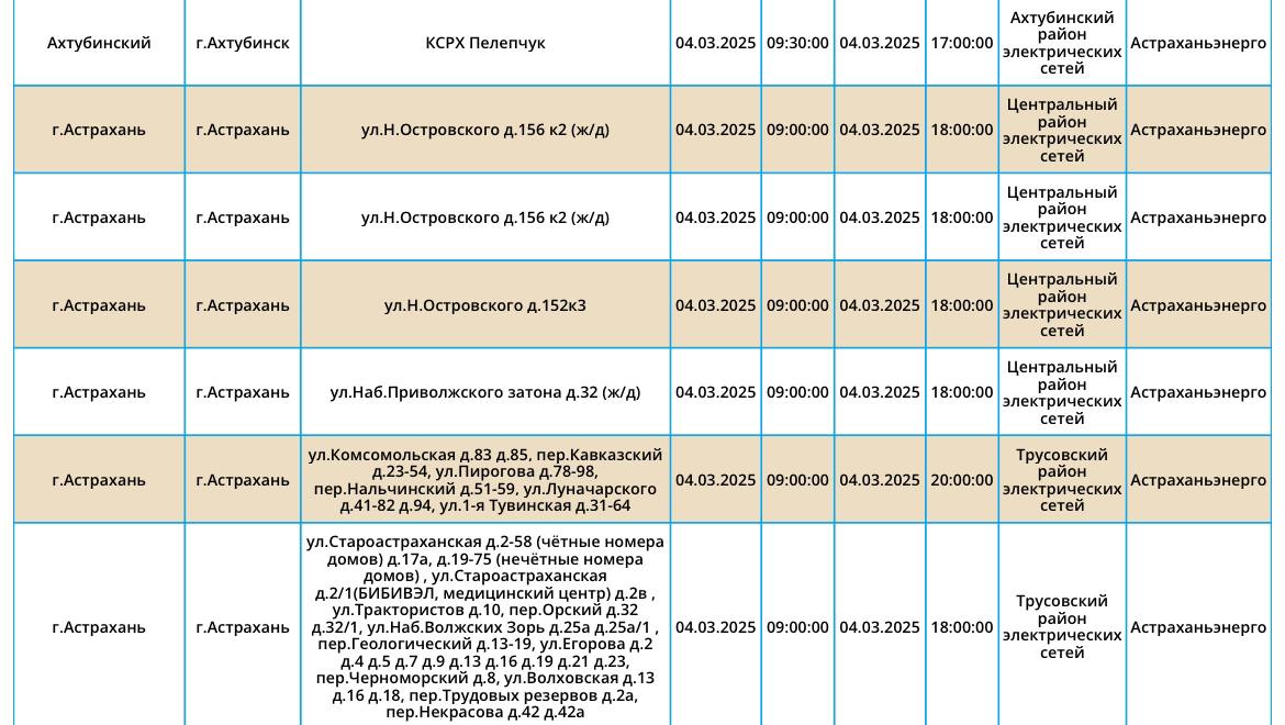 4 марта в Астрахани отключат электричество03 марта 2025 года, 19:40