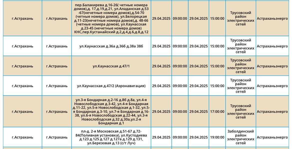 29 апреля тысячи астраханцев останутся без электроэнергии28 апреля 2025 года, 20:40