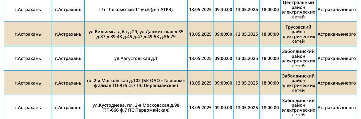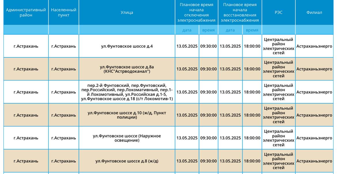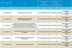 13 мая в Астрахани света не будет на хлебозаводе и в мечети12 мая 2025 года, 21:30