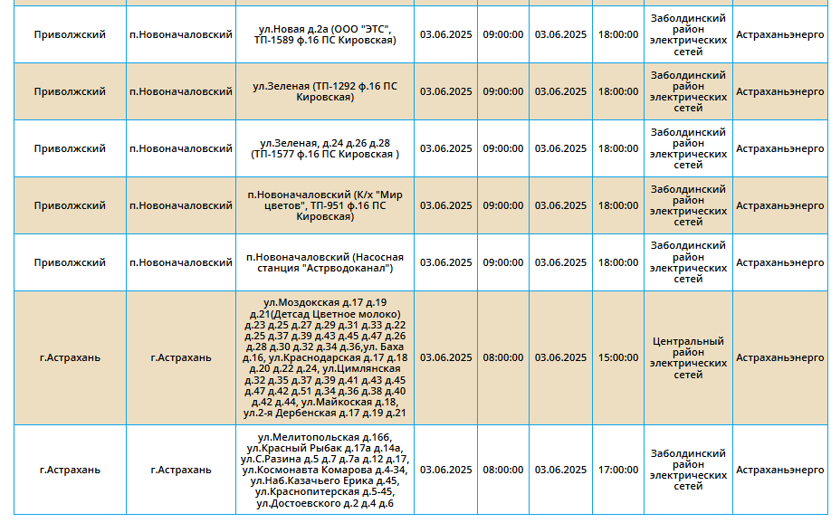 3 июня отключения света затронут Астрахань и поселок в Приволжском районе03 июня 2025 года, 15:45