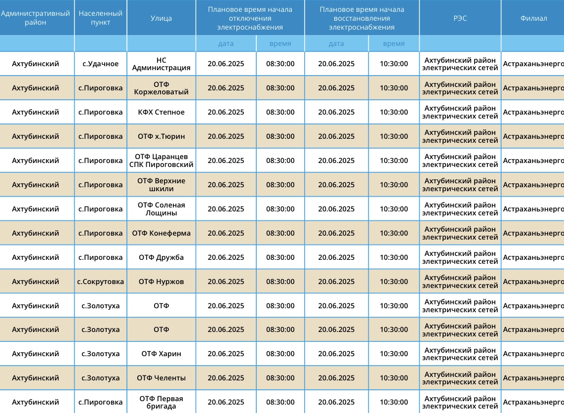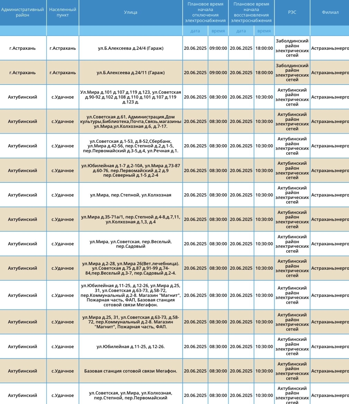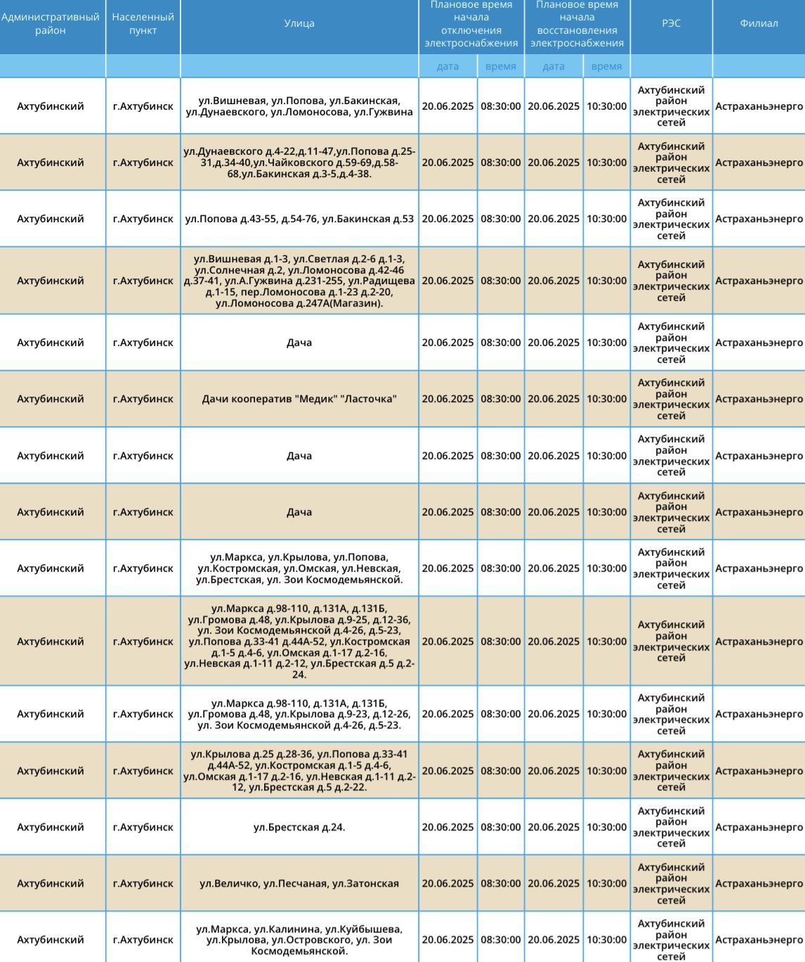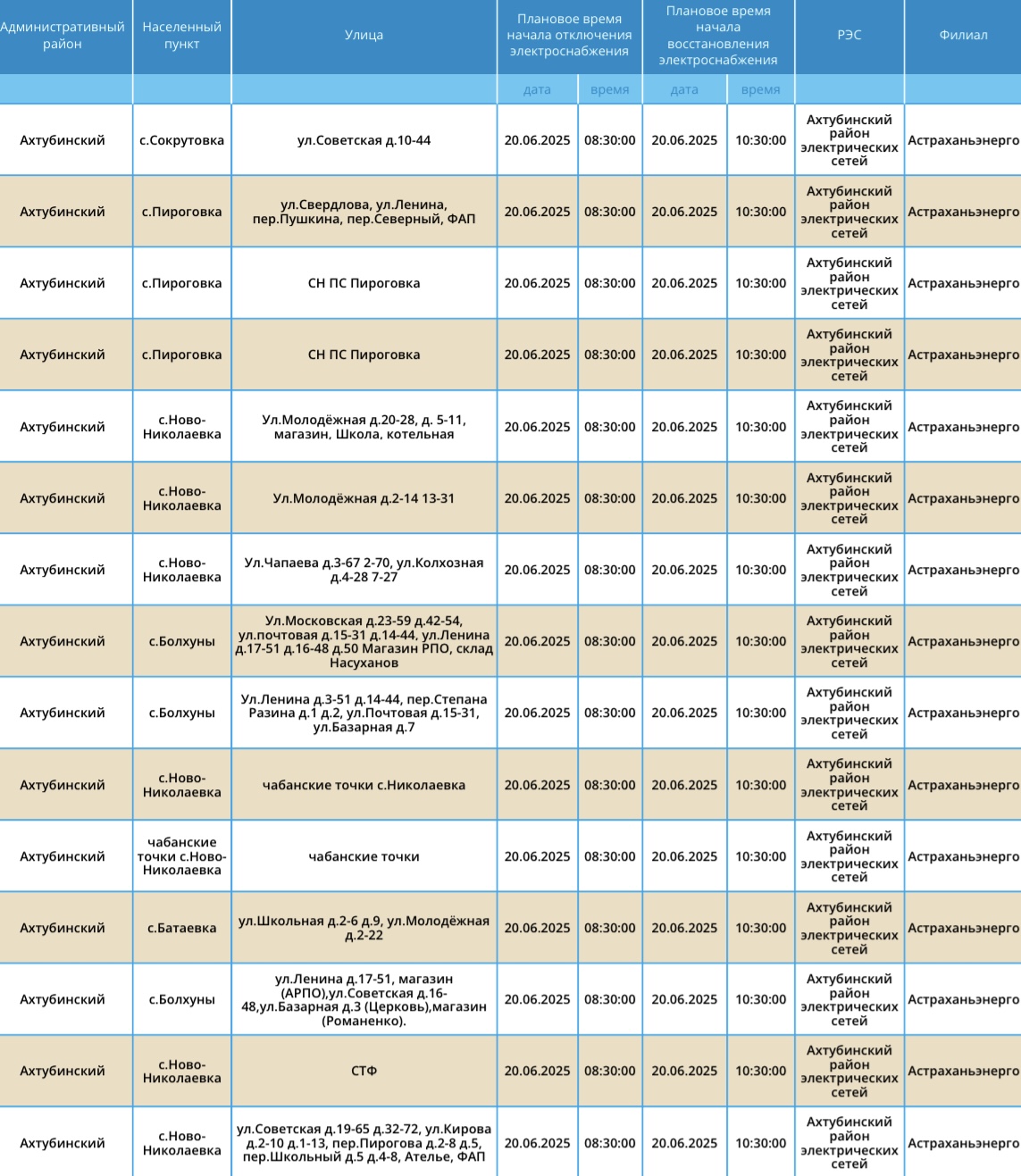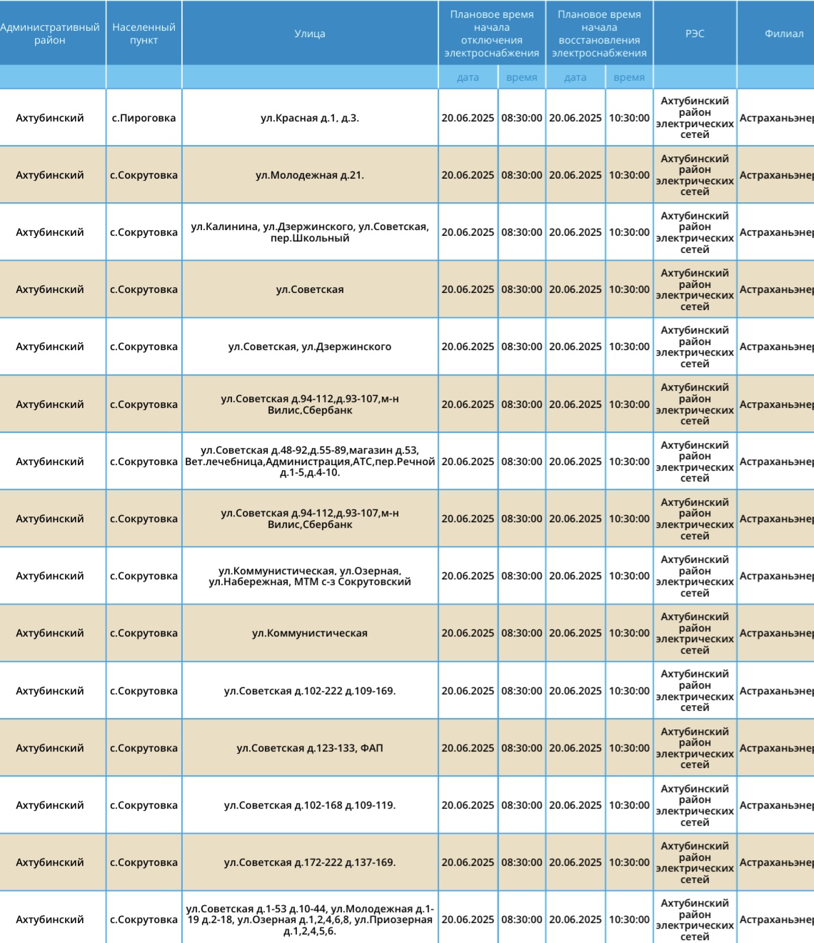 20 июня некоторые астраханские села останутся без света19 июня 2025 года, 21:10