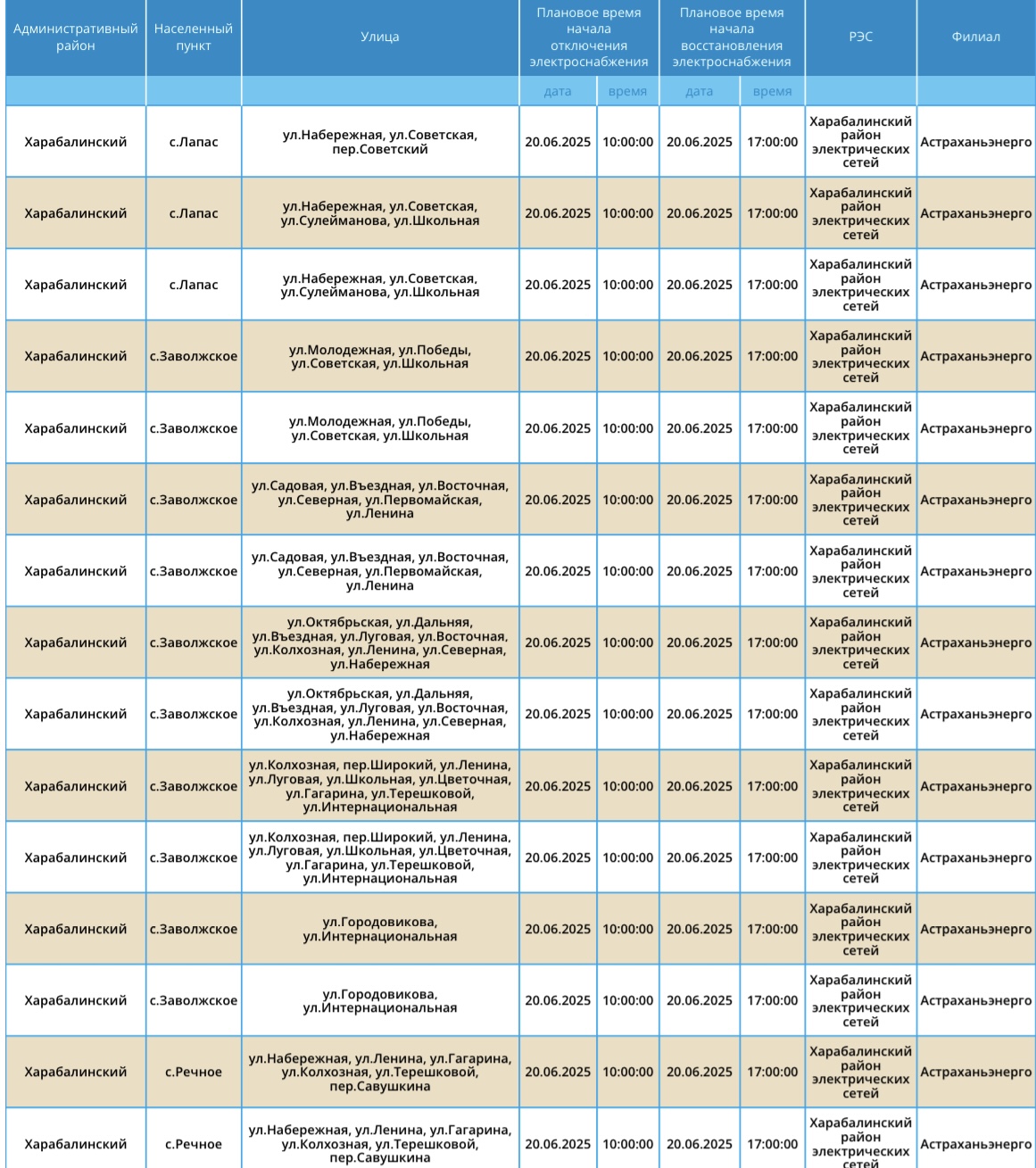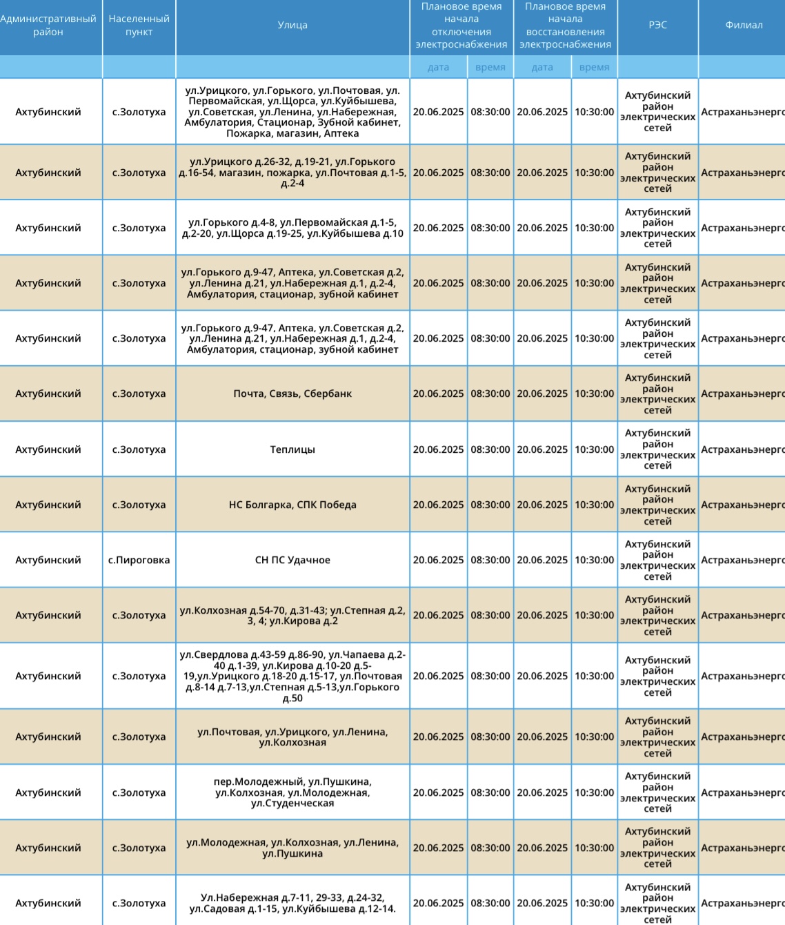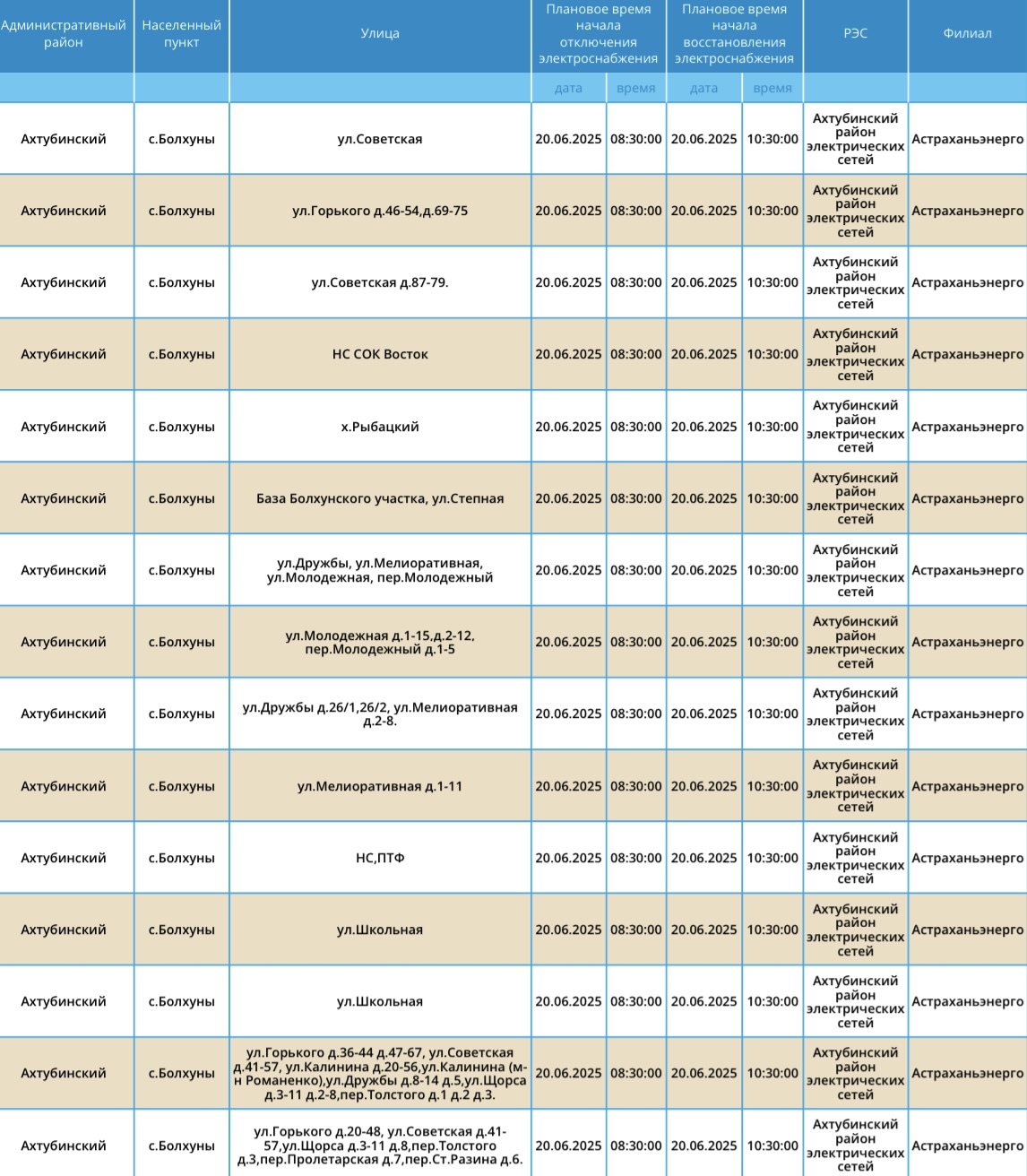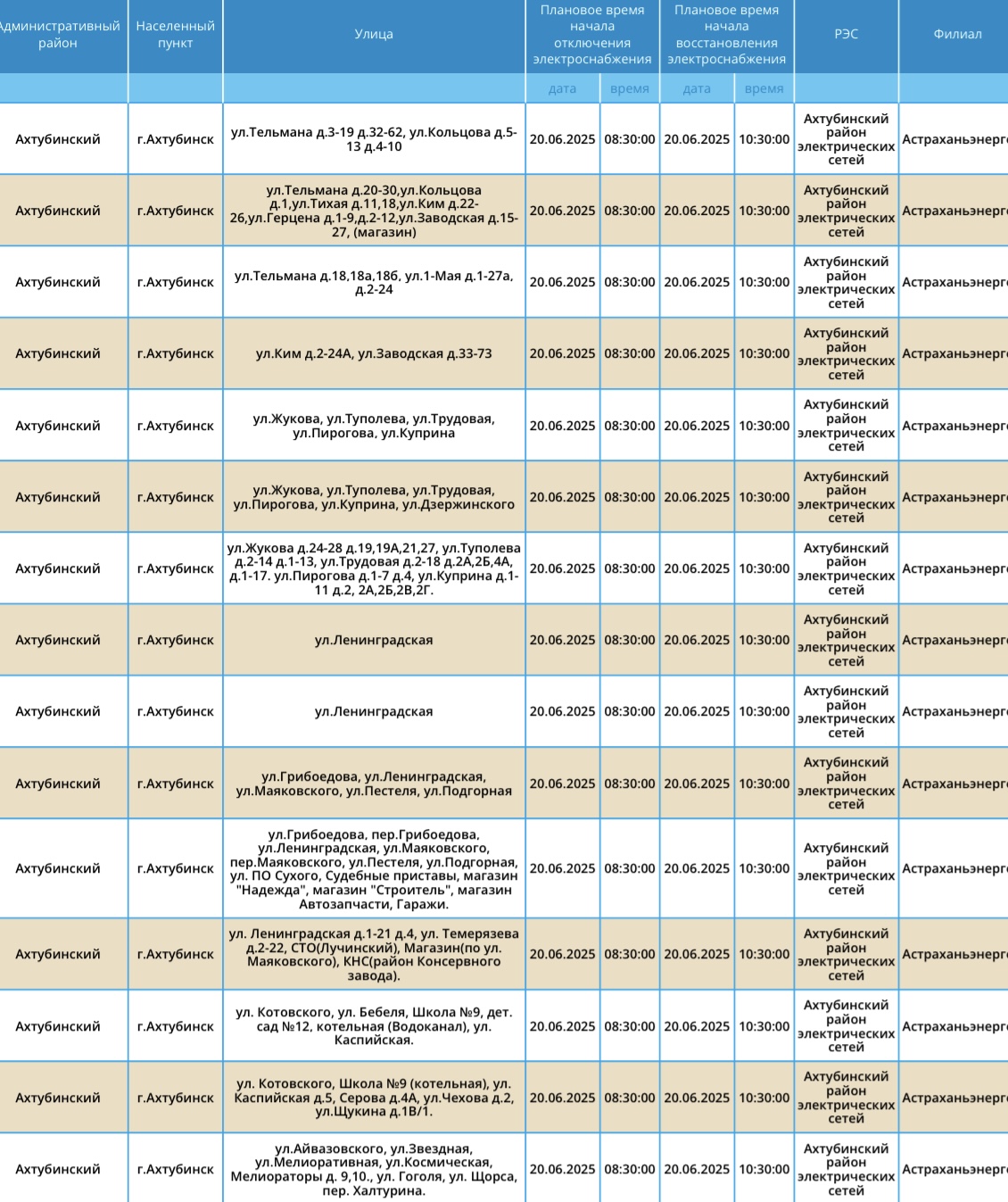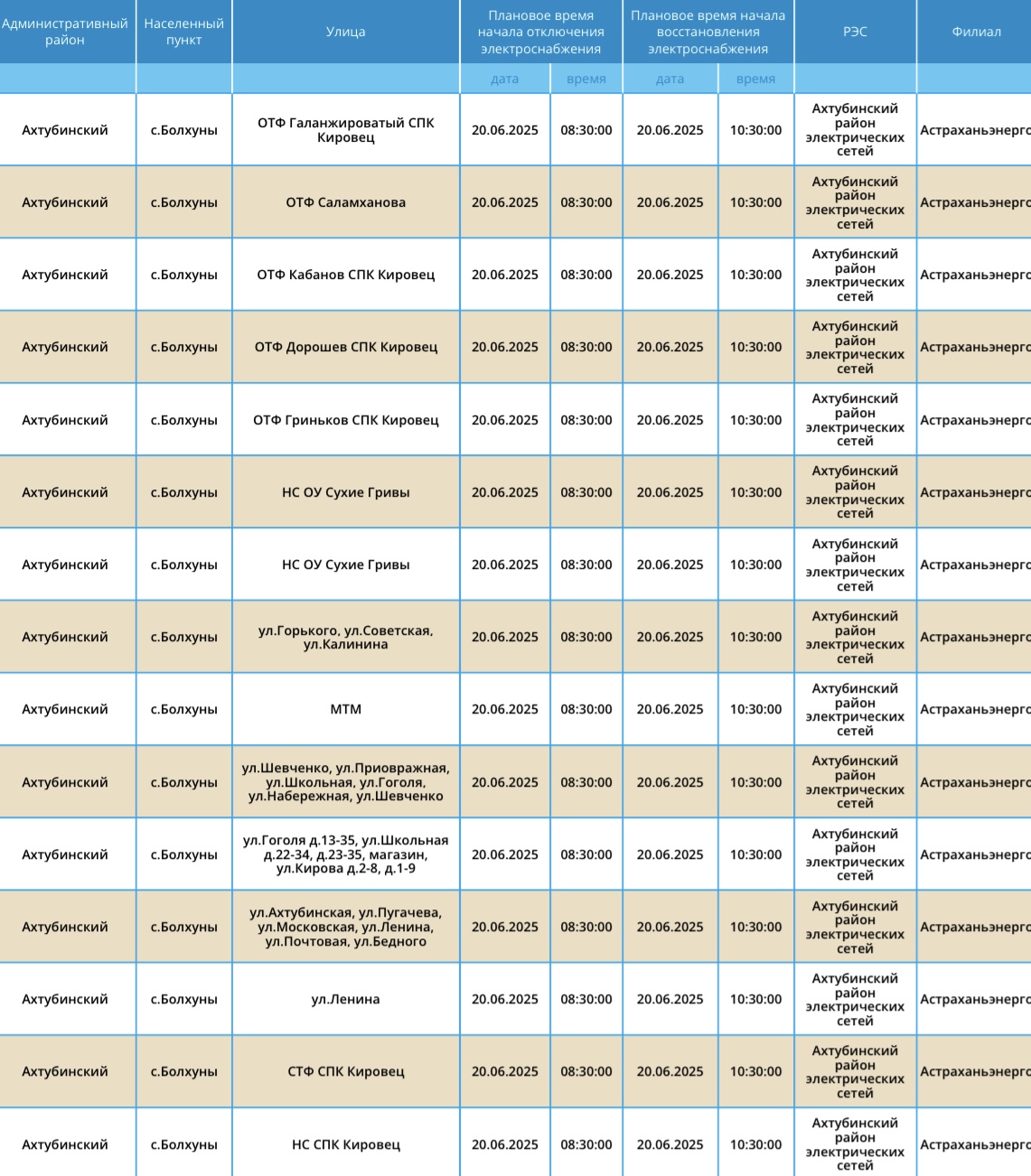 20 июня некоторые астраханские села останутся без света19 июня 2025 года, 21:10