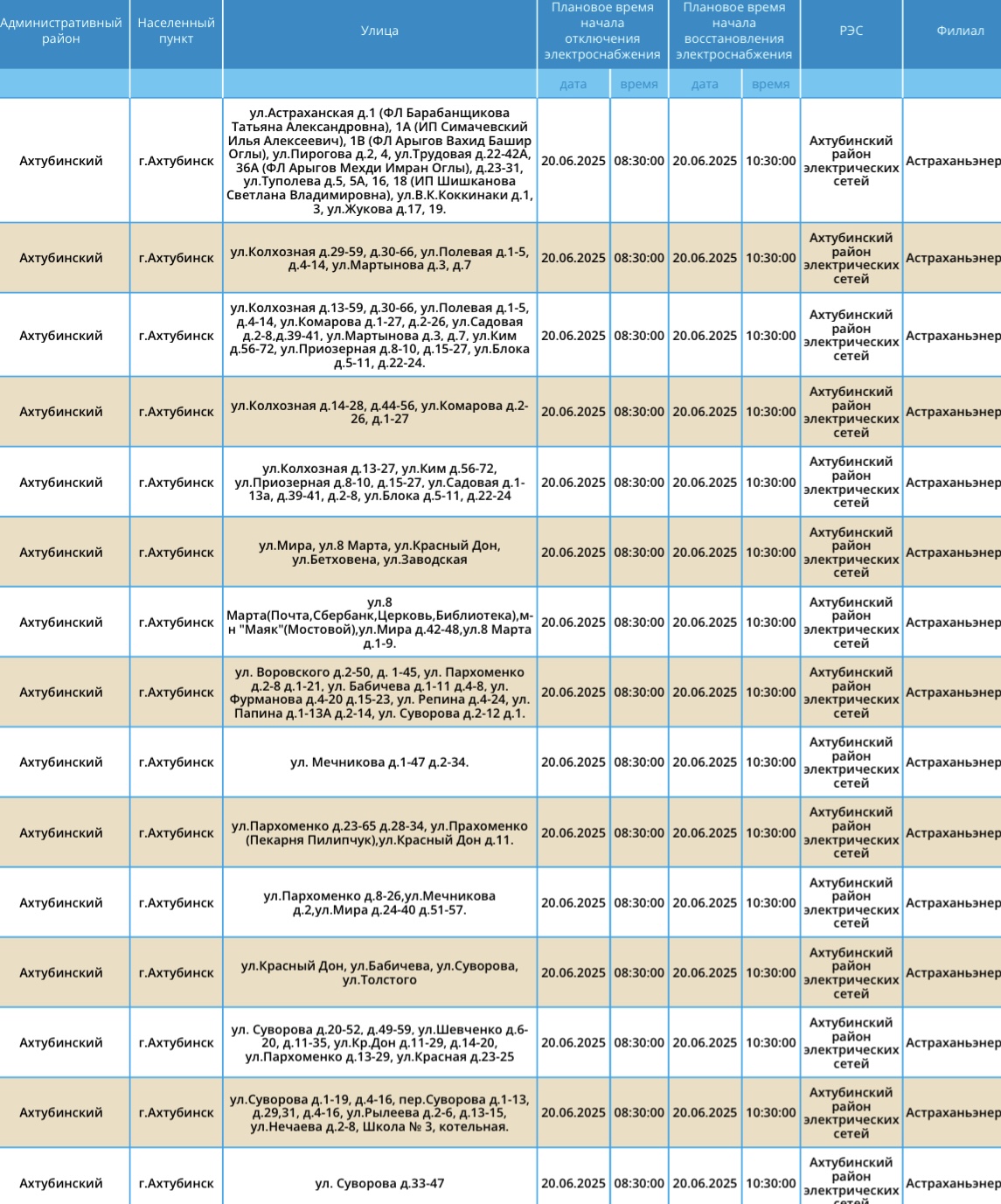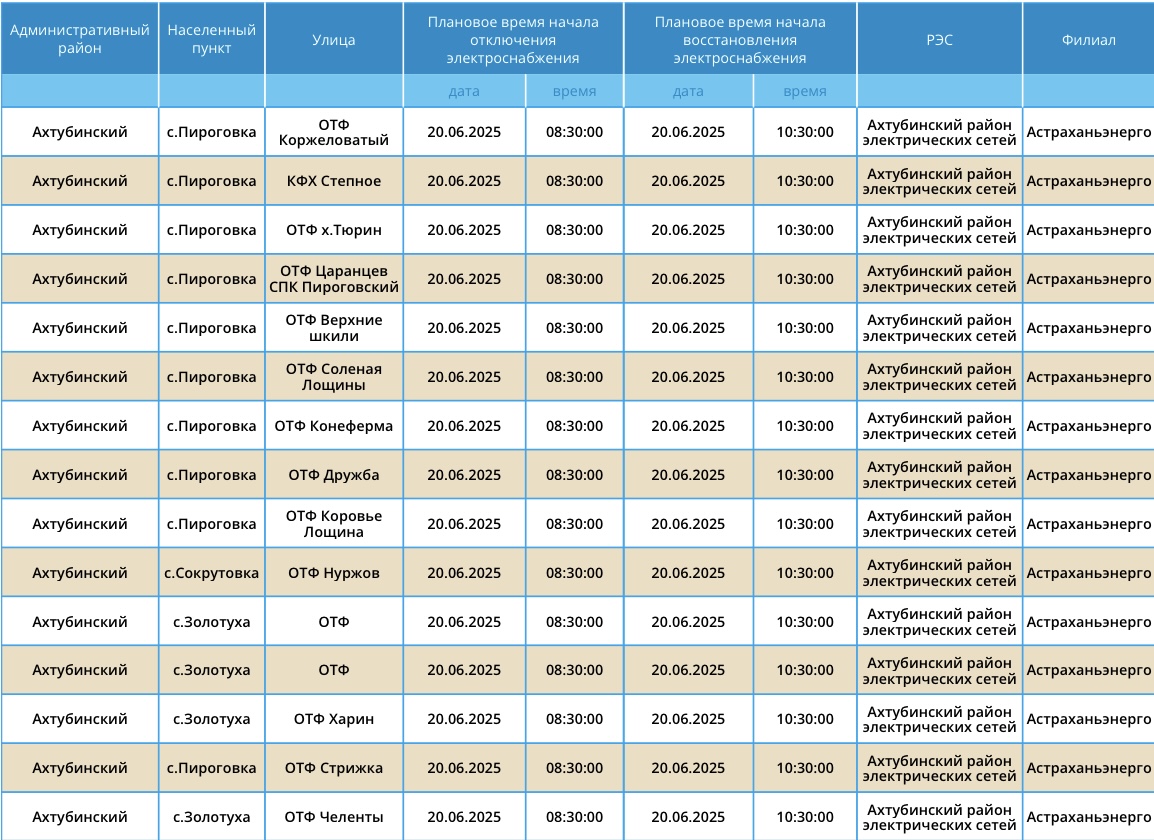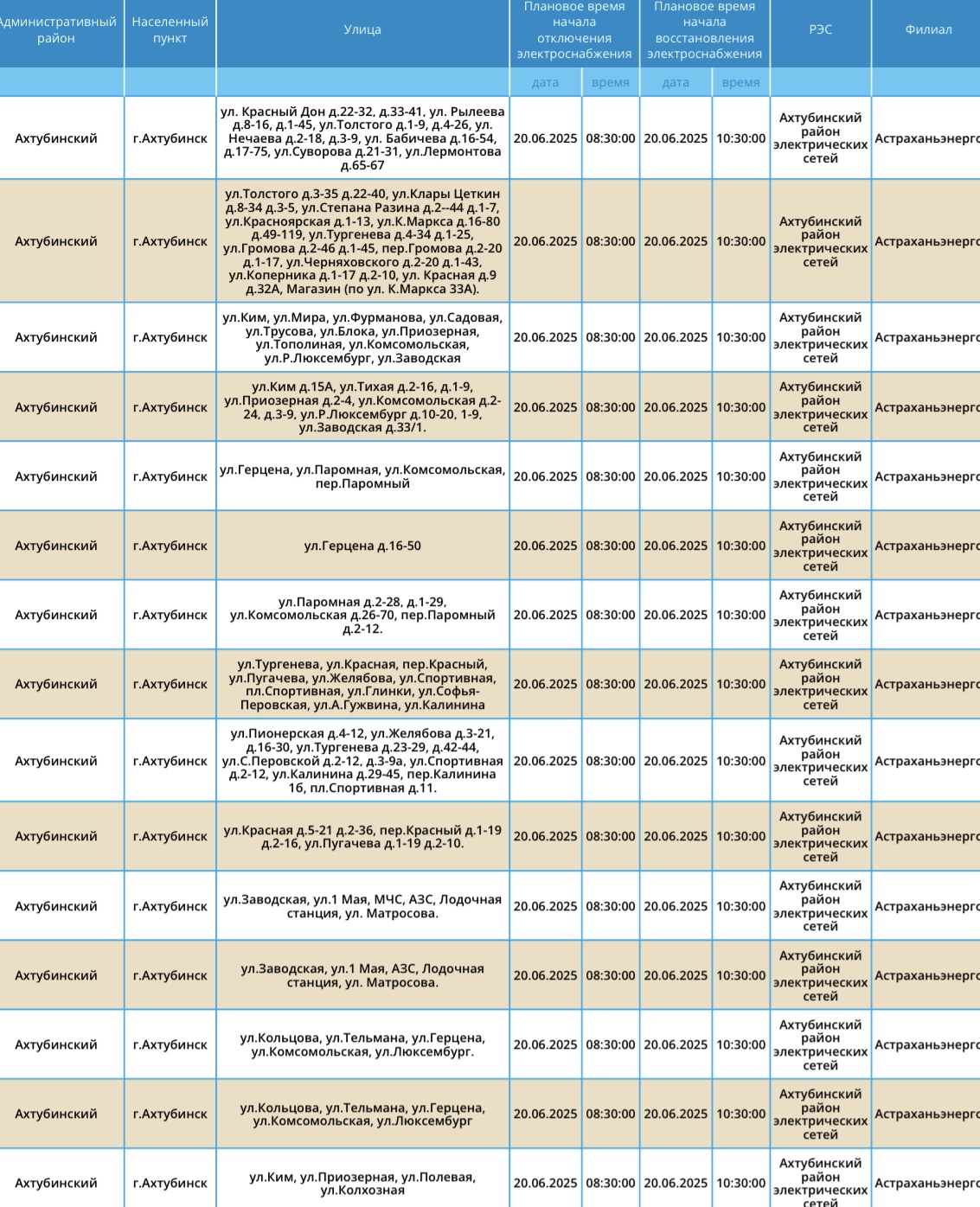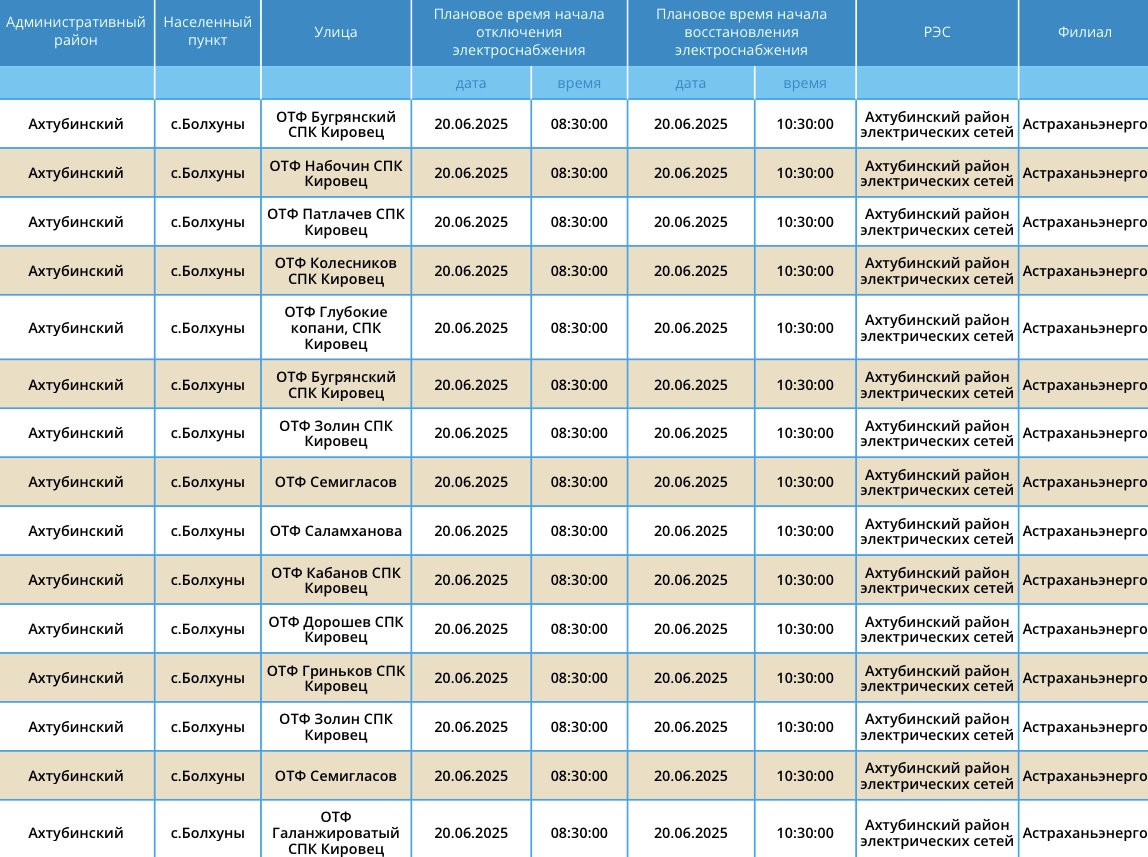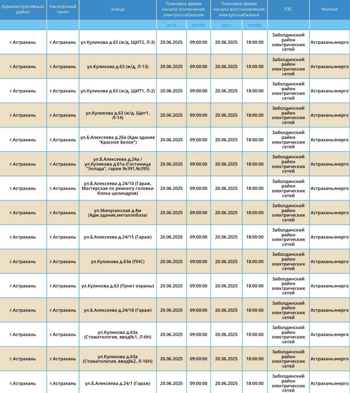 20 июня некоторые астраханские села останутся без света19 июня 2025 года, 21:10