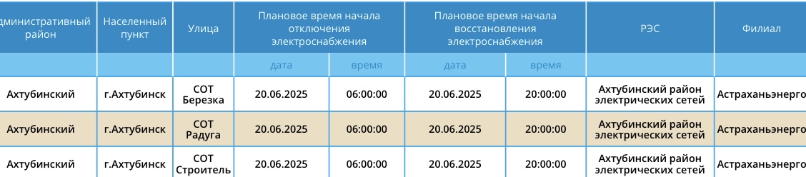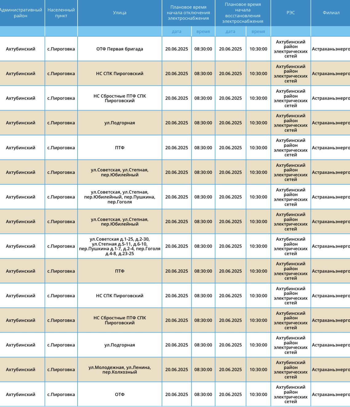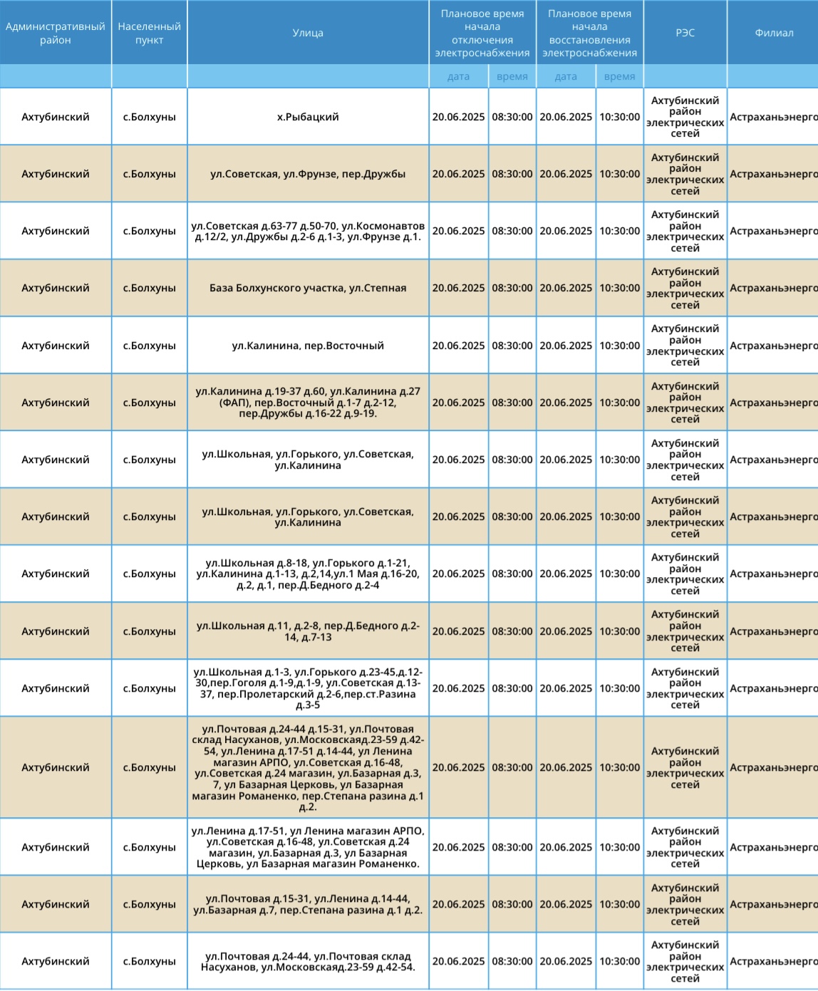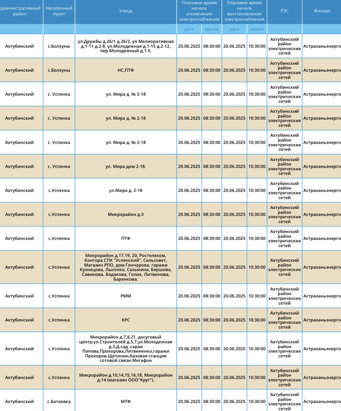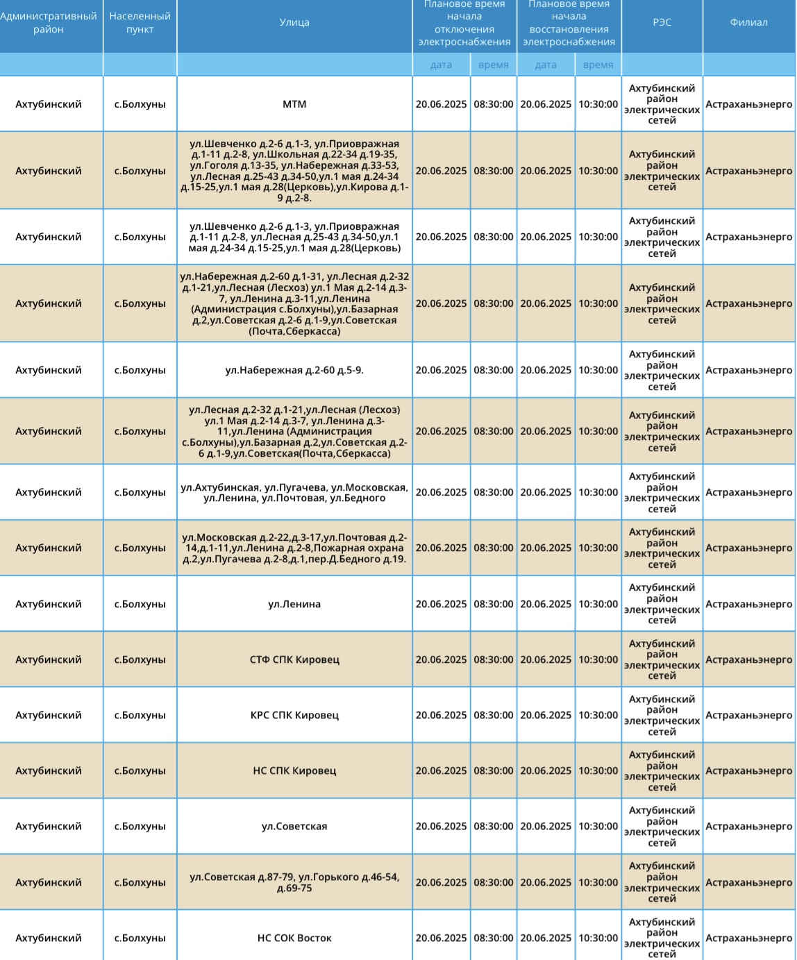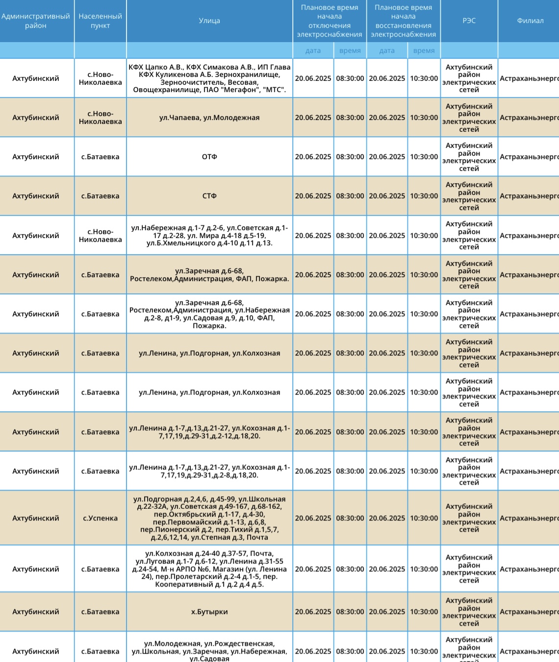 20 июня некоторые астраханские села останутся без света19 июня 2025 года, 21:10