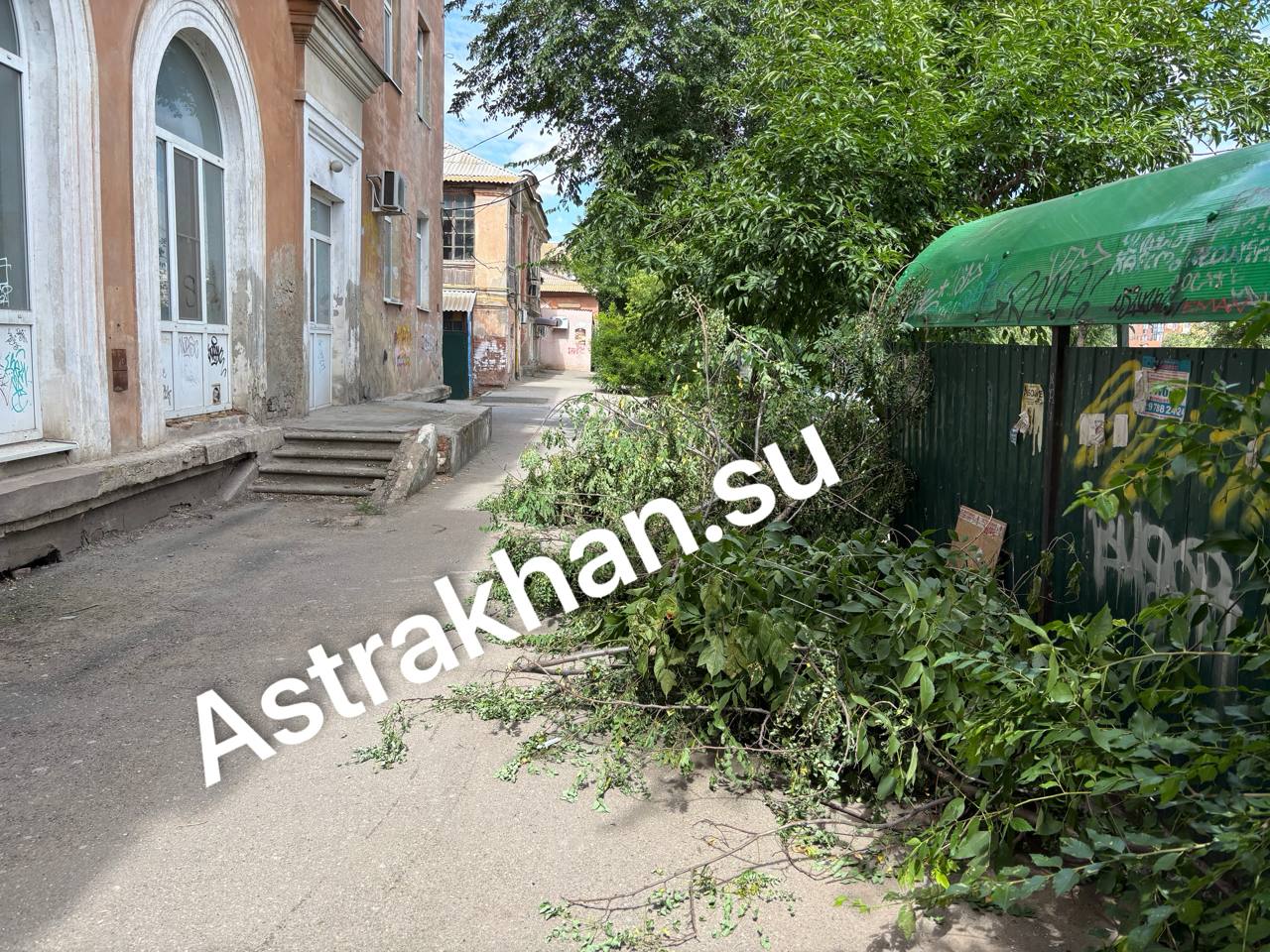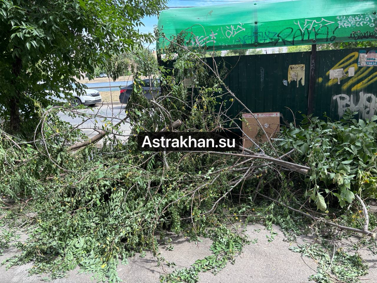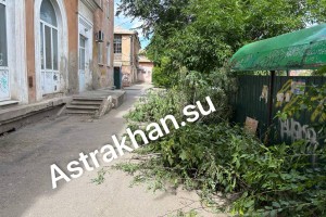В Астрахани опиленные ветви почти перекрыли проход по тротуару03 июля 2025 года, 16:40