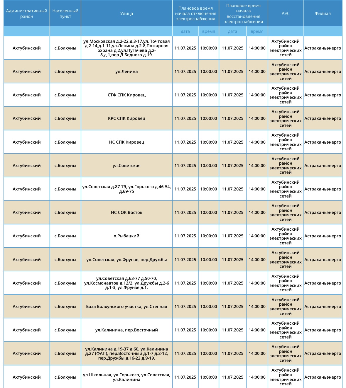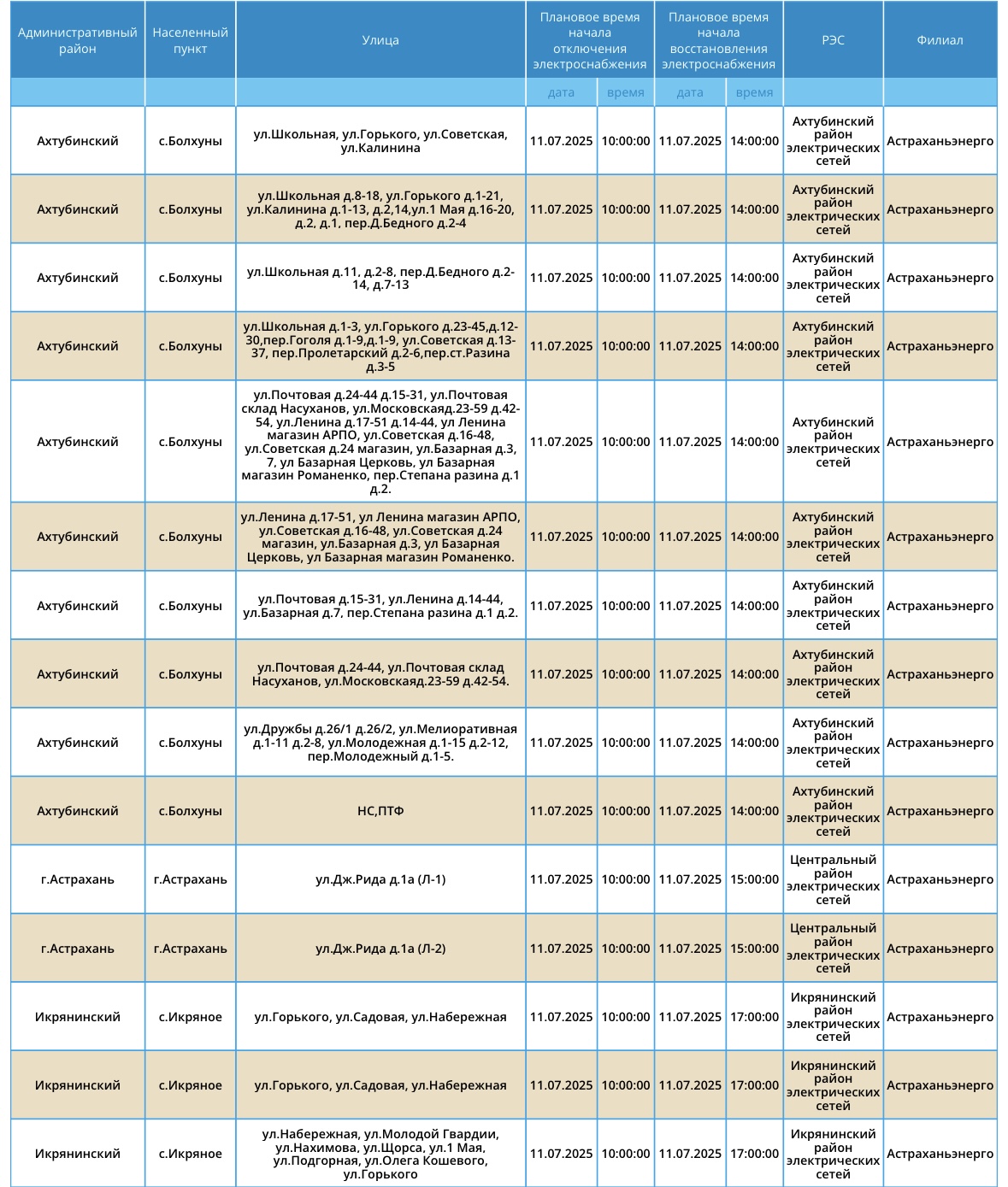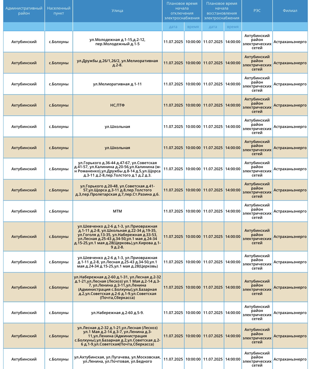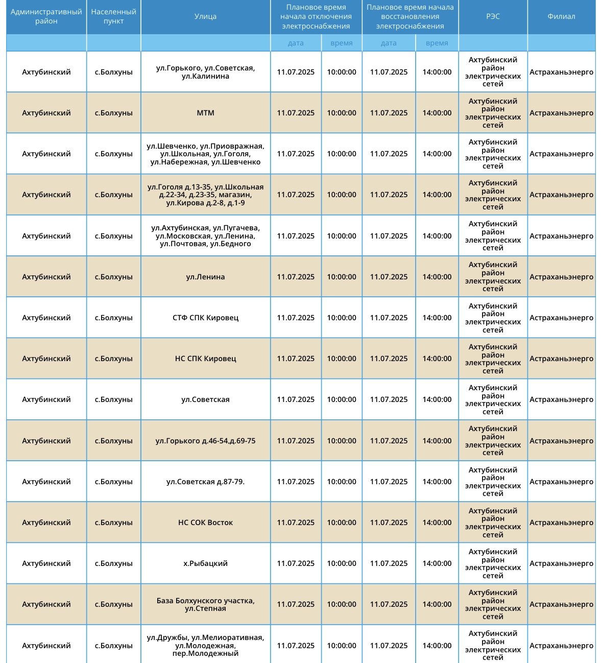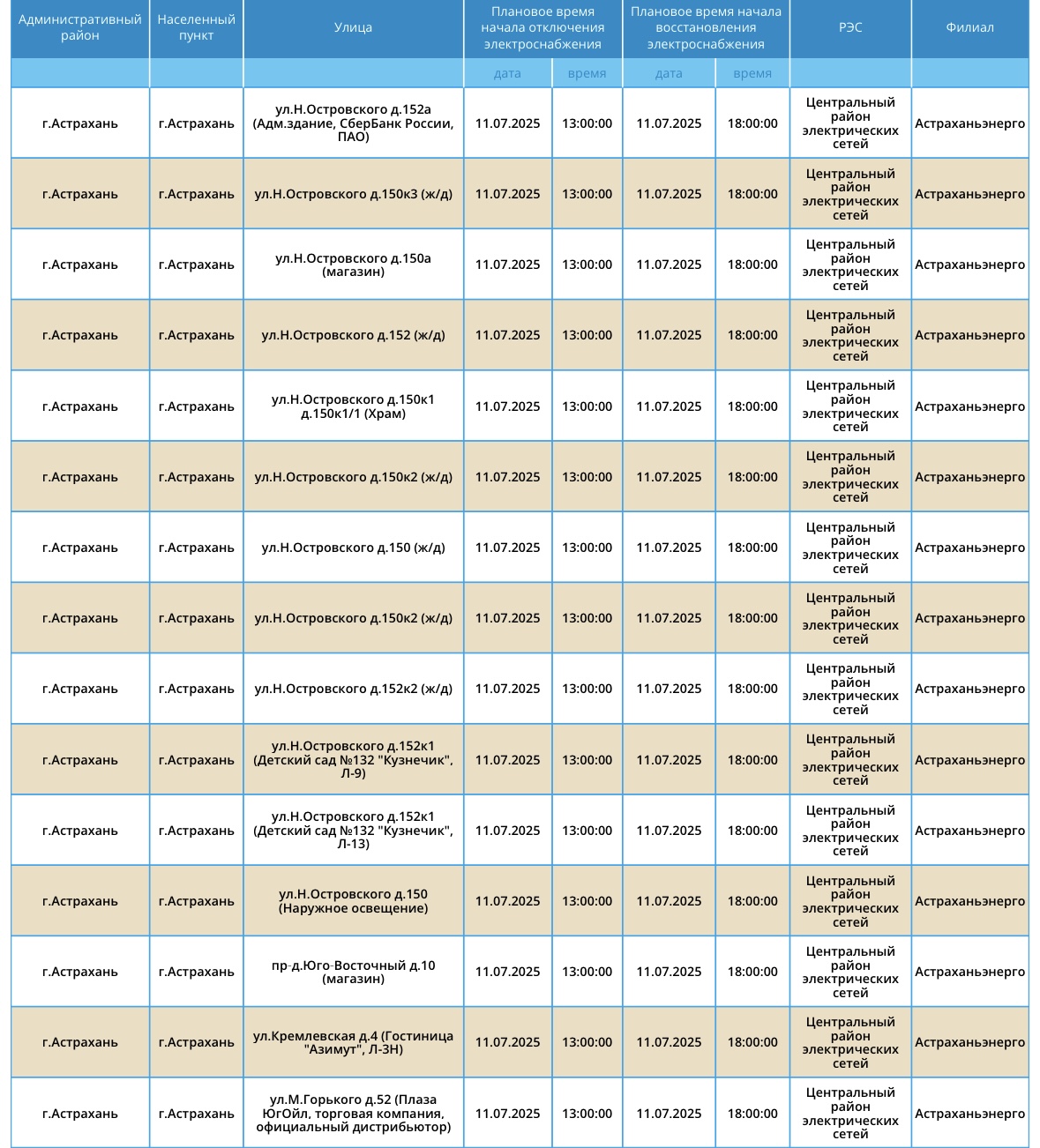 11 июля астраханцев ждут массовые отключения света10 июля 2025 года, 20:50