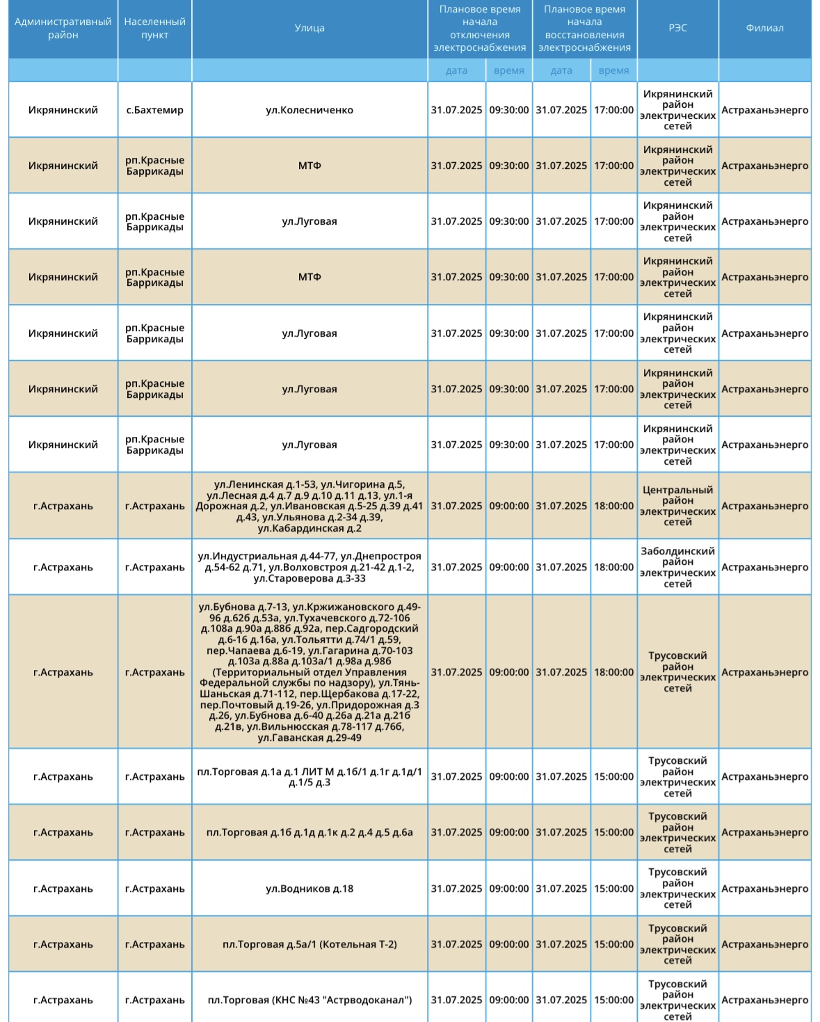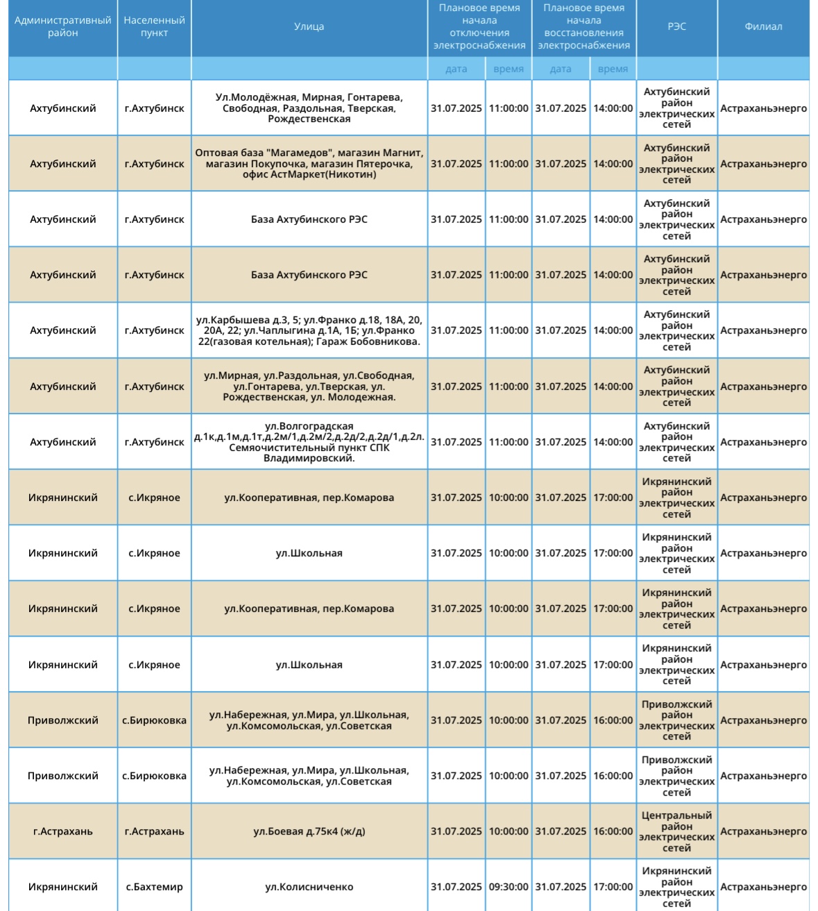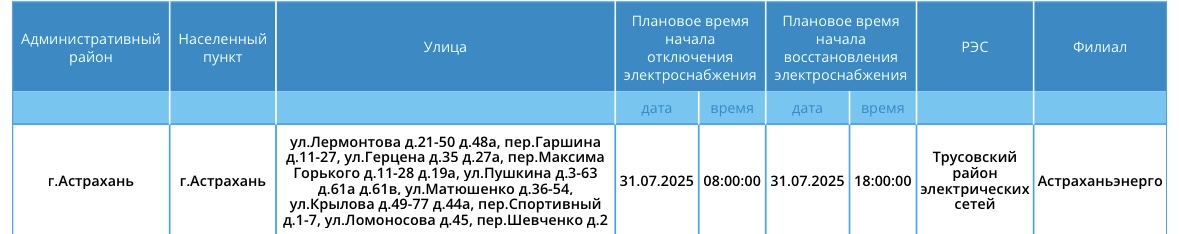 31 июля некоторые жители Астрахани и области останутся без света30 июля 2025 года, 21:40