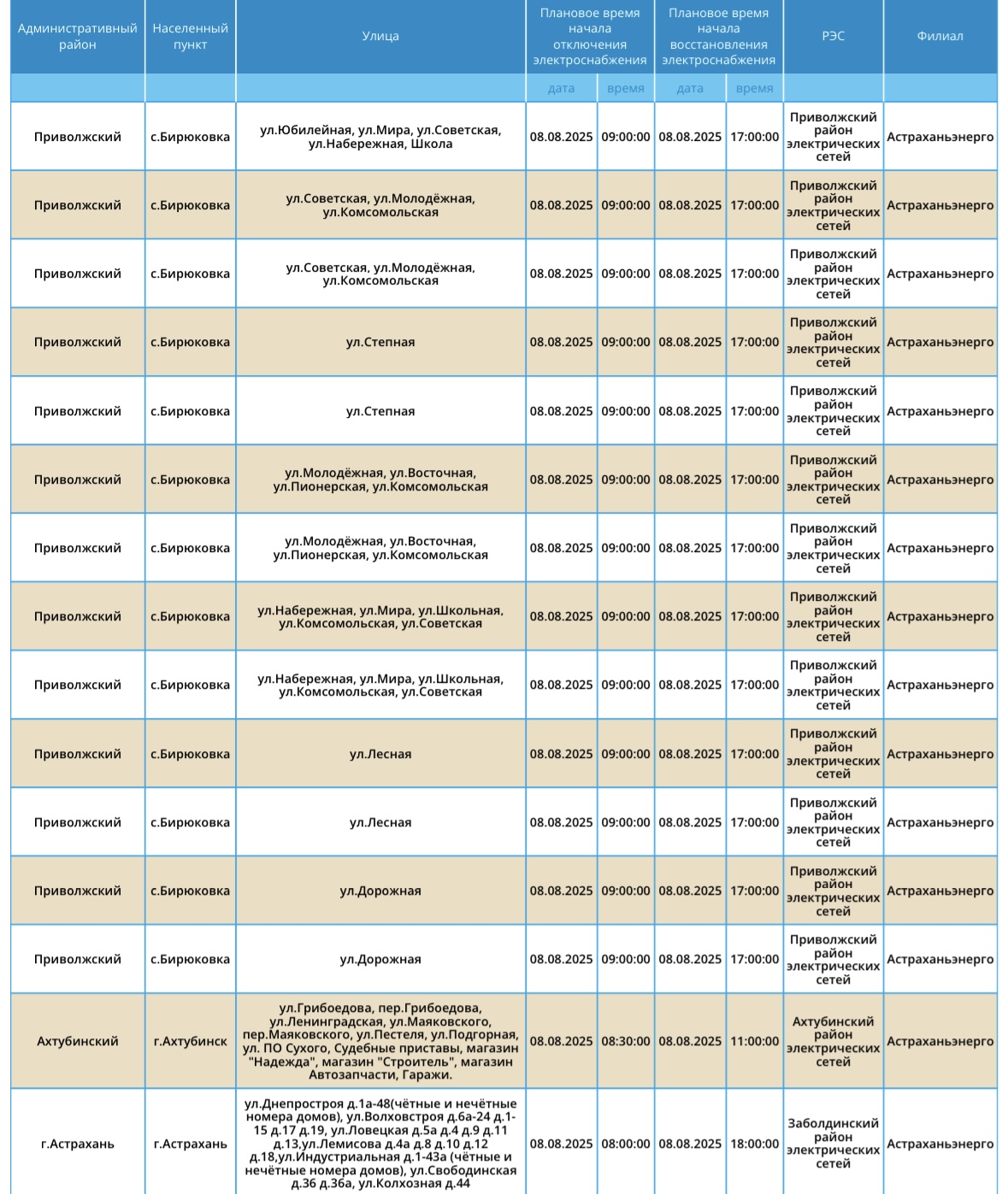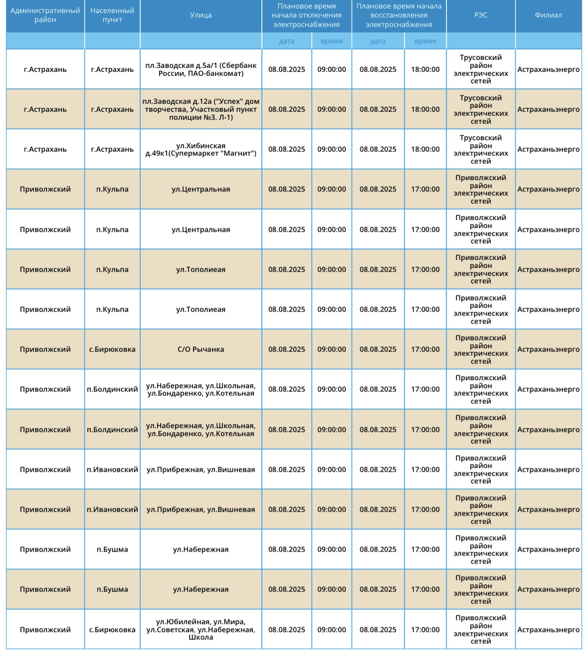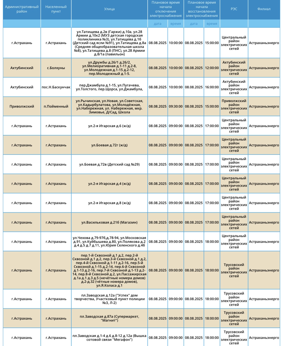8 августа в Астраханской области пройдут массовые отключения света08 августа 2025 года, 20:50