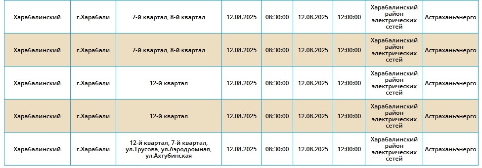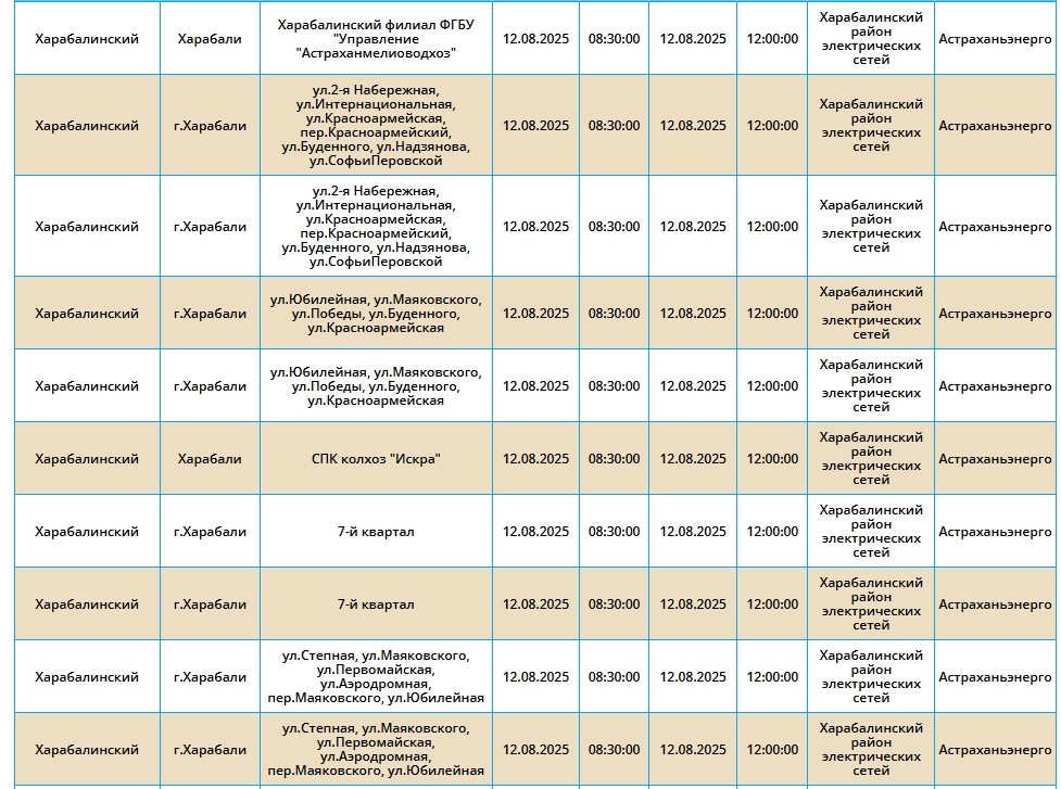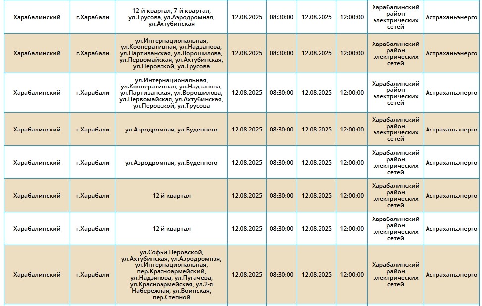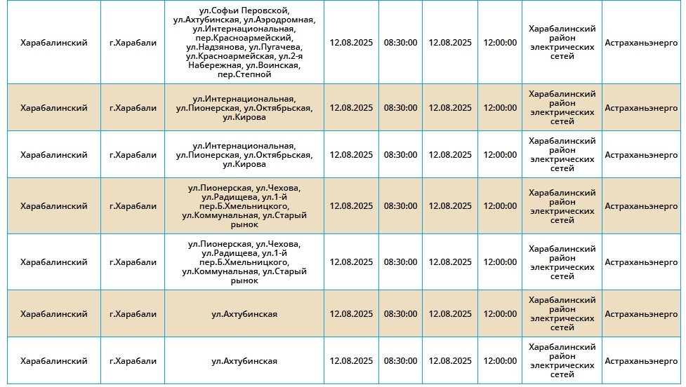 Плановые отключения электроэнергии продолжаются. Как сообщает пресс-служба "Россети Юг", завтра, 12 августа, без света несколько часов проведут тысячи астраханцев в разных районах города и области. Таким образом, света не будет у жителей областного центра, Ахтубинского, Приволжского, а также Харабалинского районов. В последнем, кстати, предстоит крупное отключение сразу нескольких населенных пунктов. Подробнее в галерее ниже:
