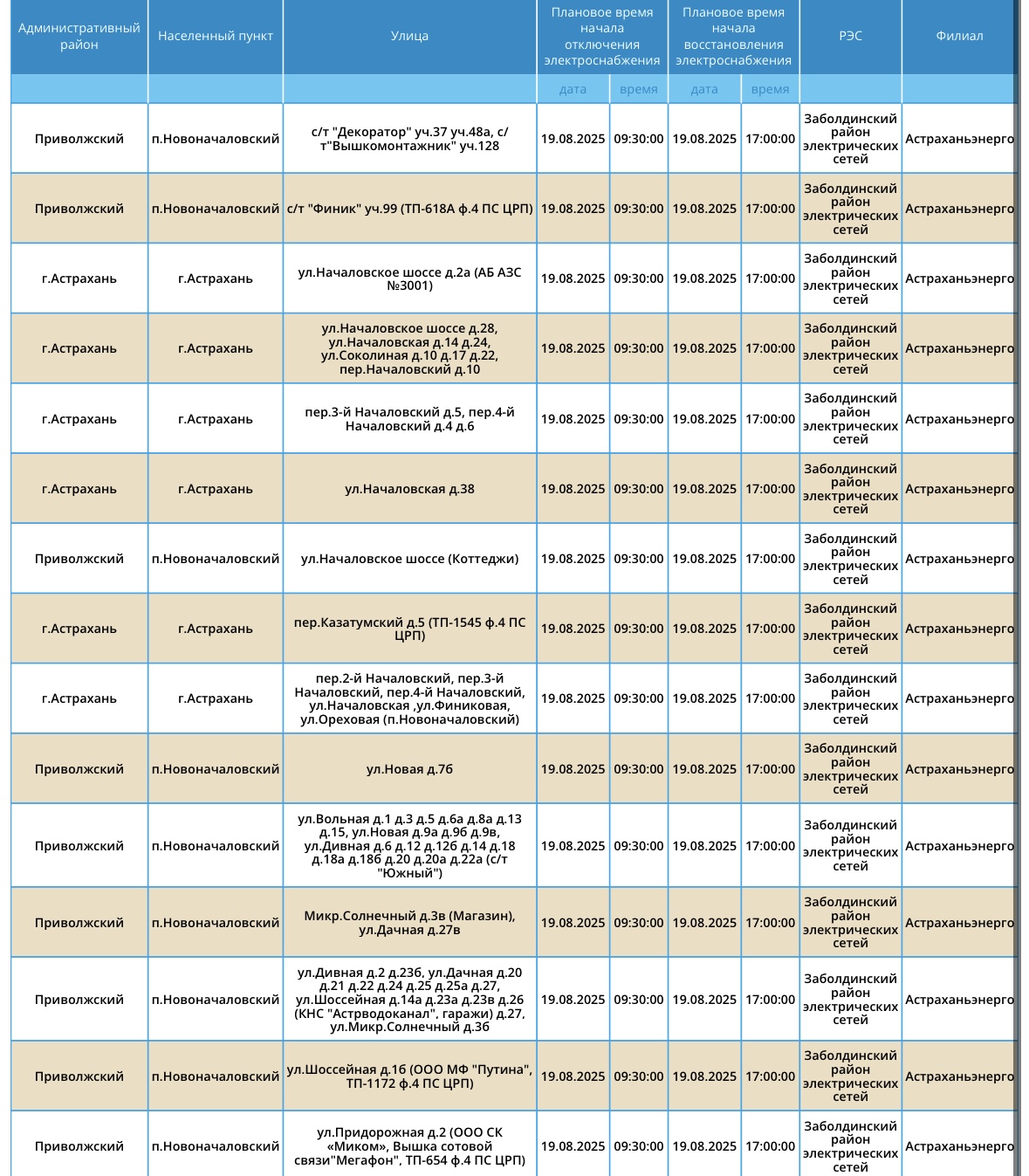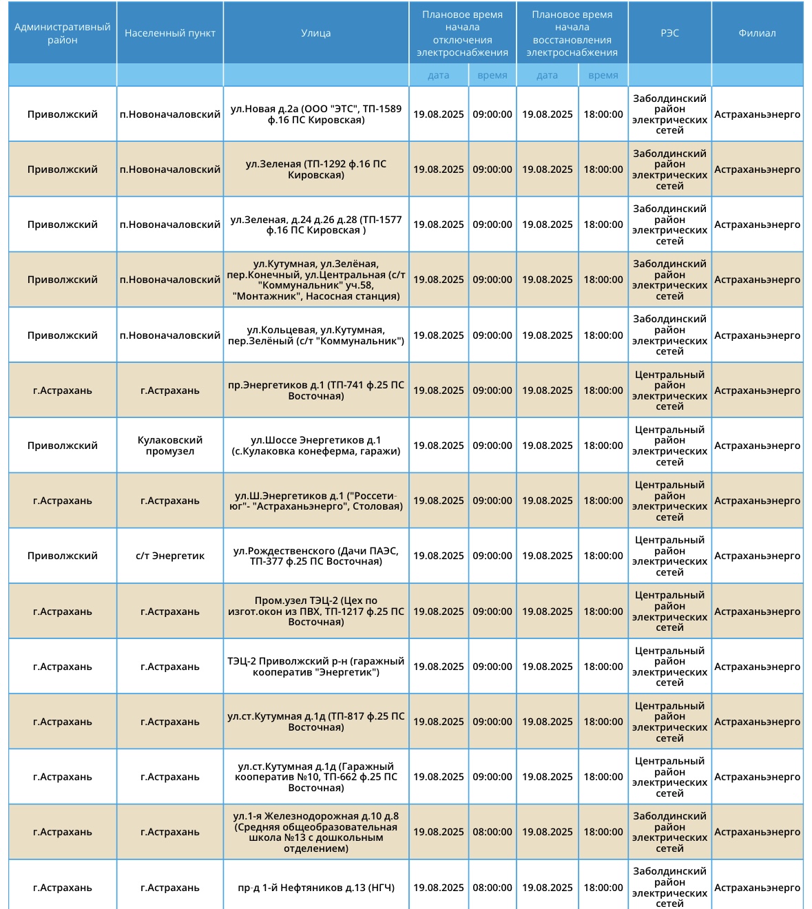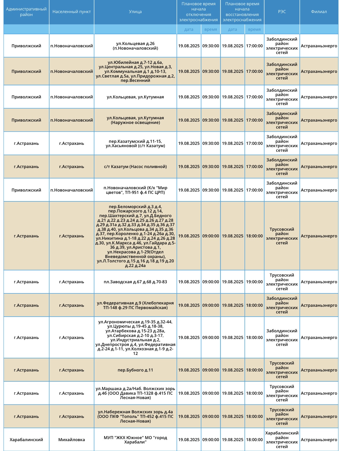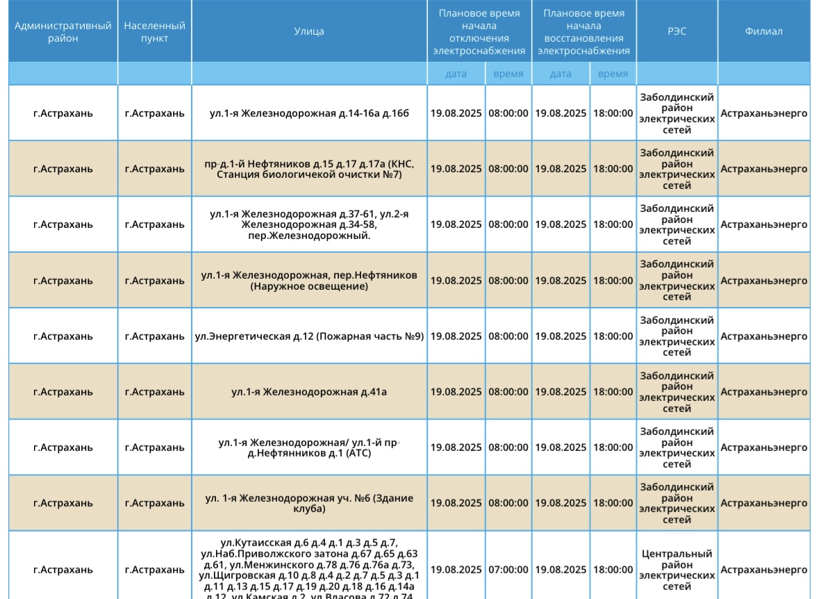 19 августа астраханцев ожидают массовые отключения электроэнергии18 августа 2025 года, 20:40