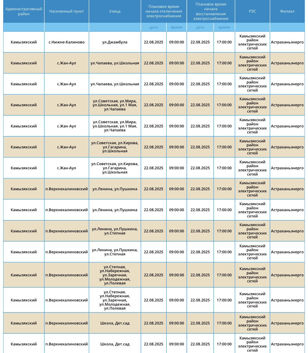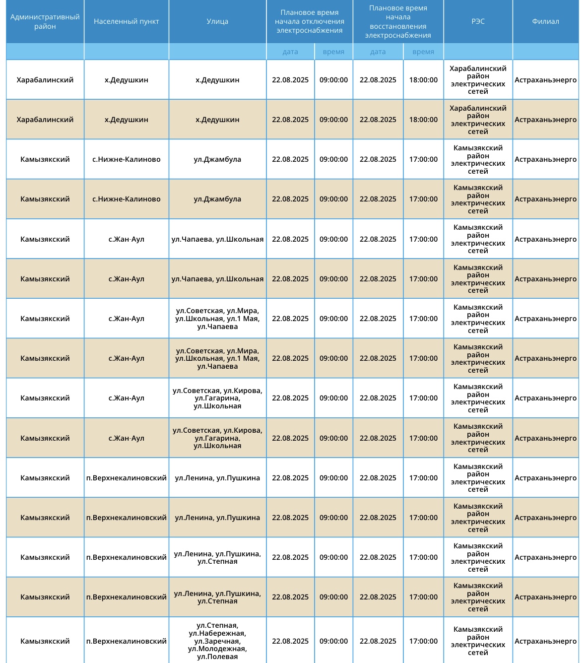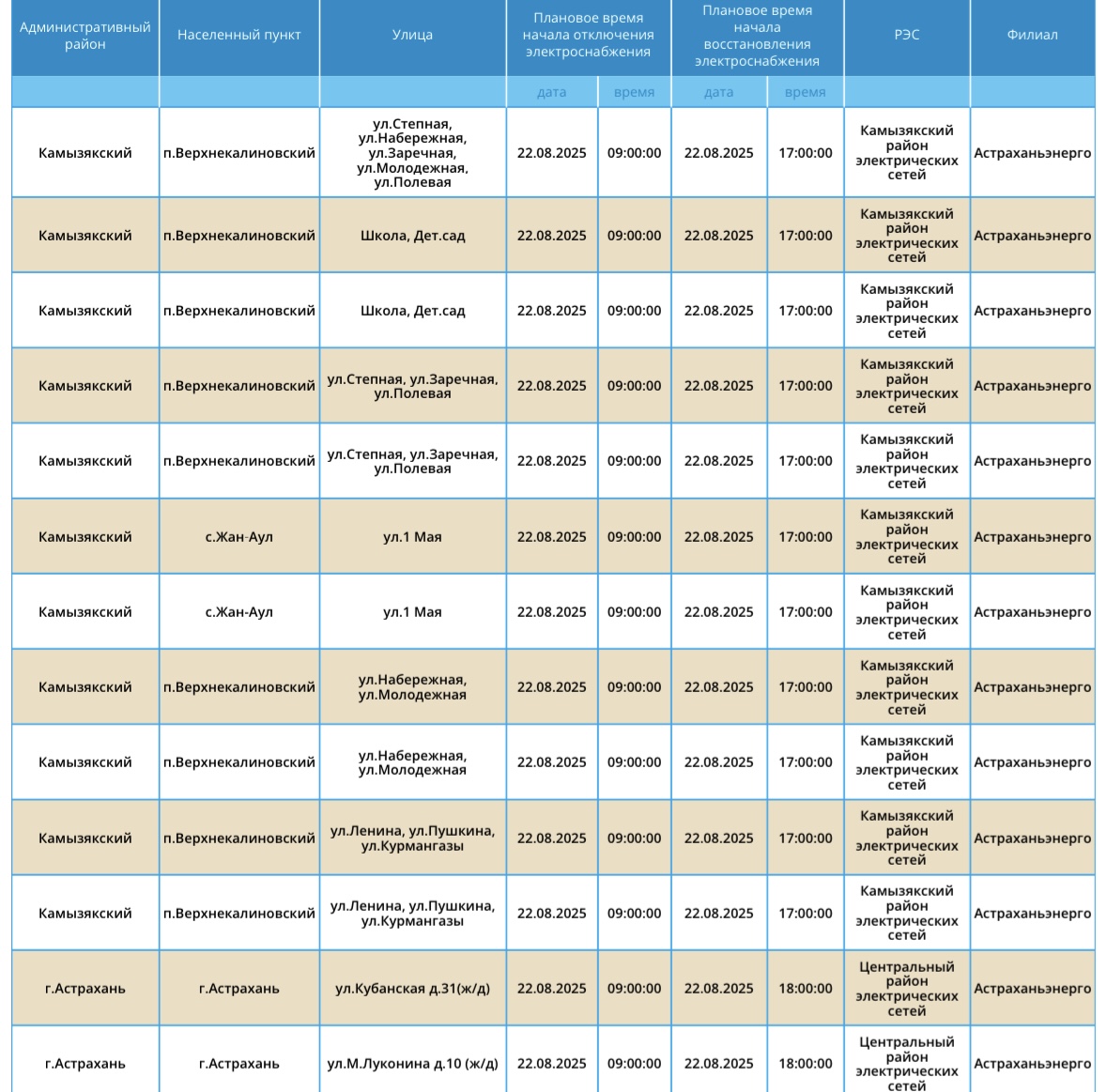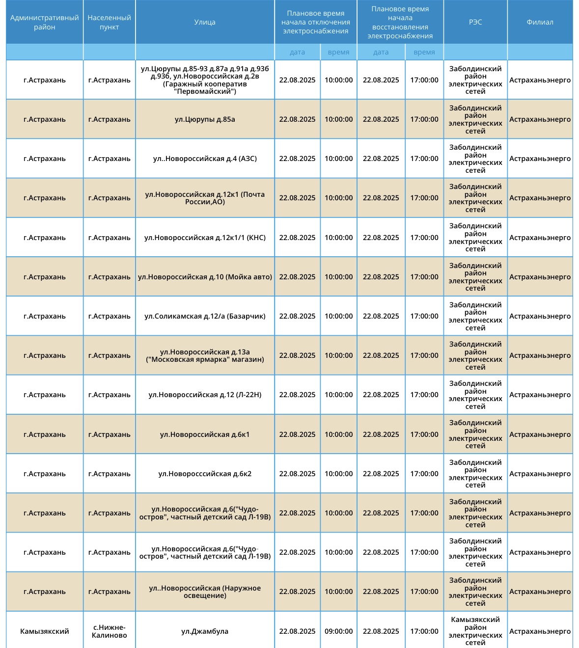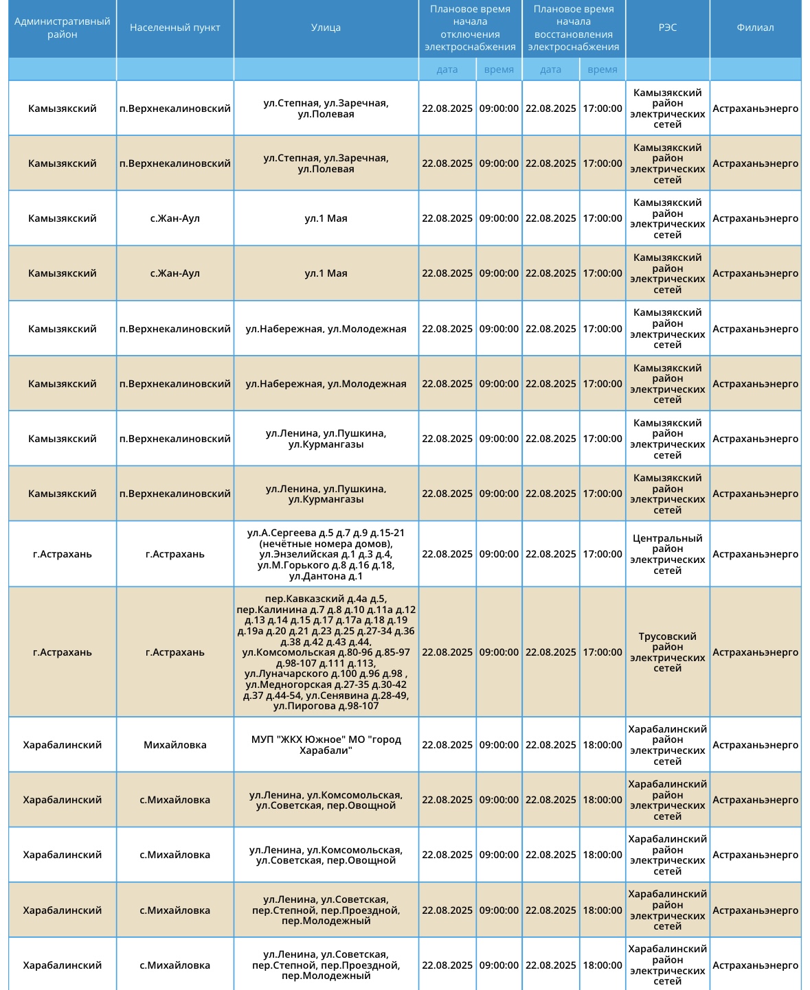 22 августа Астрахань и область ожидают массовые отключения света21 августа 2025 года, 20:41