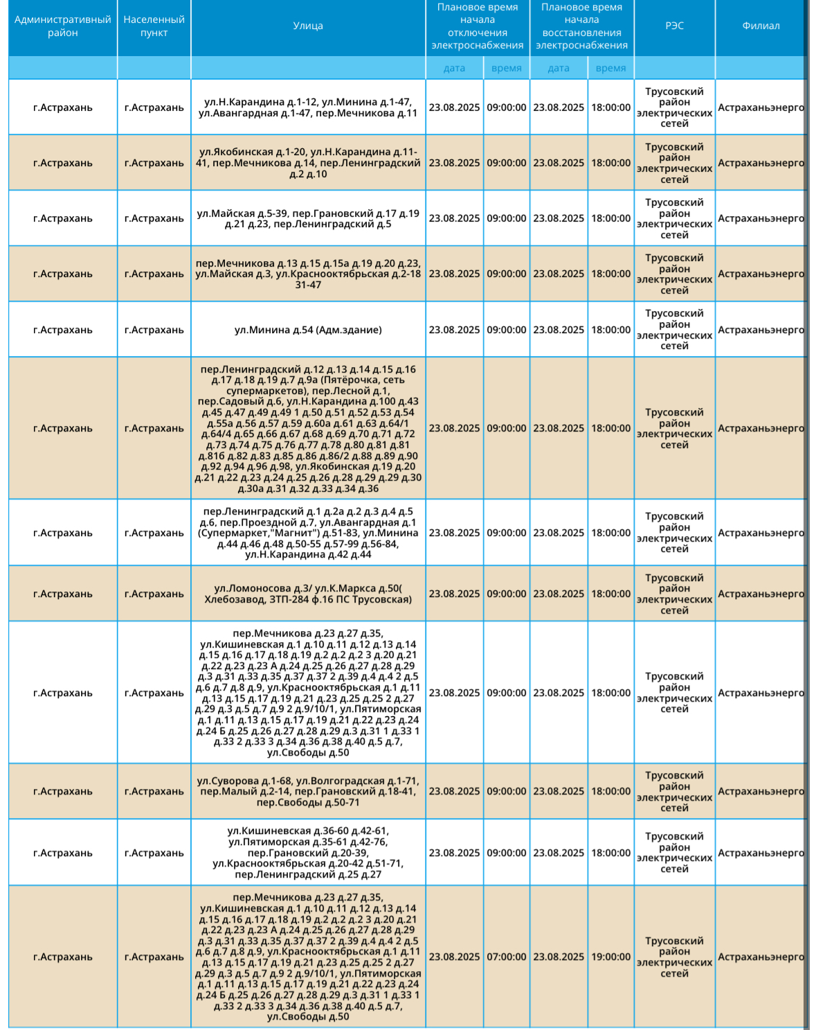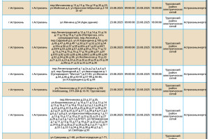 23 августа жителей Астрахани ожидают отключения света22 августа 2025 года, 20:40
