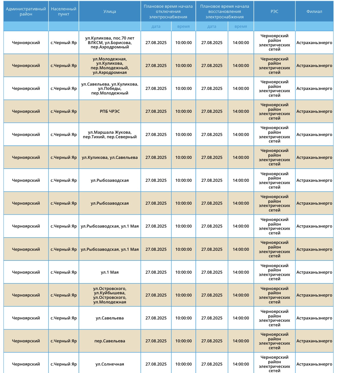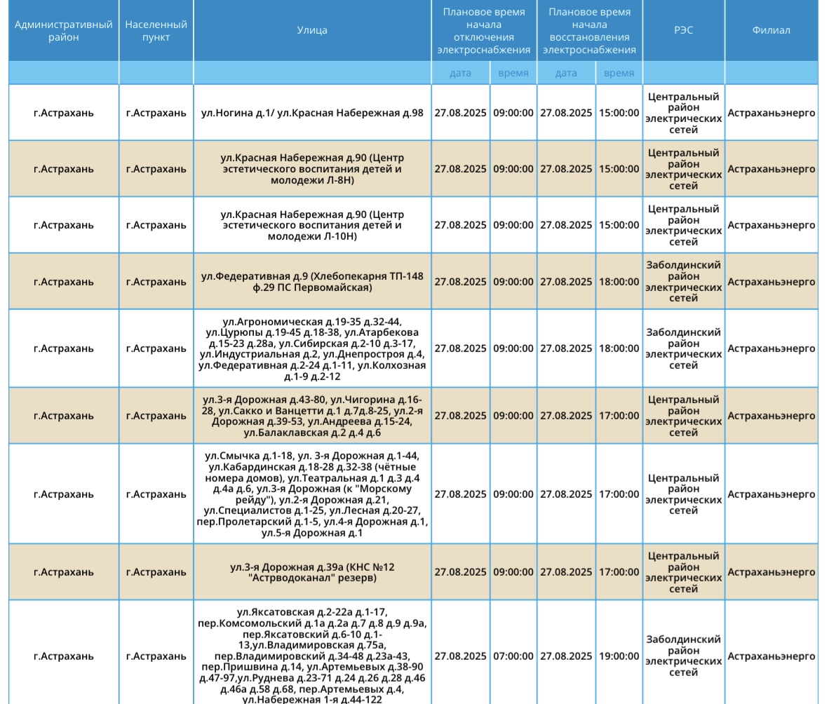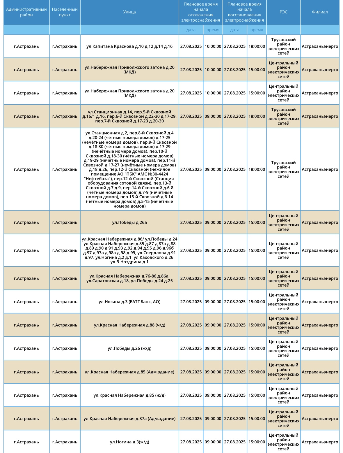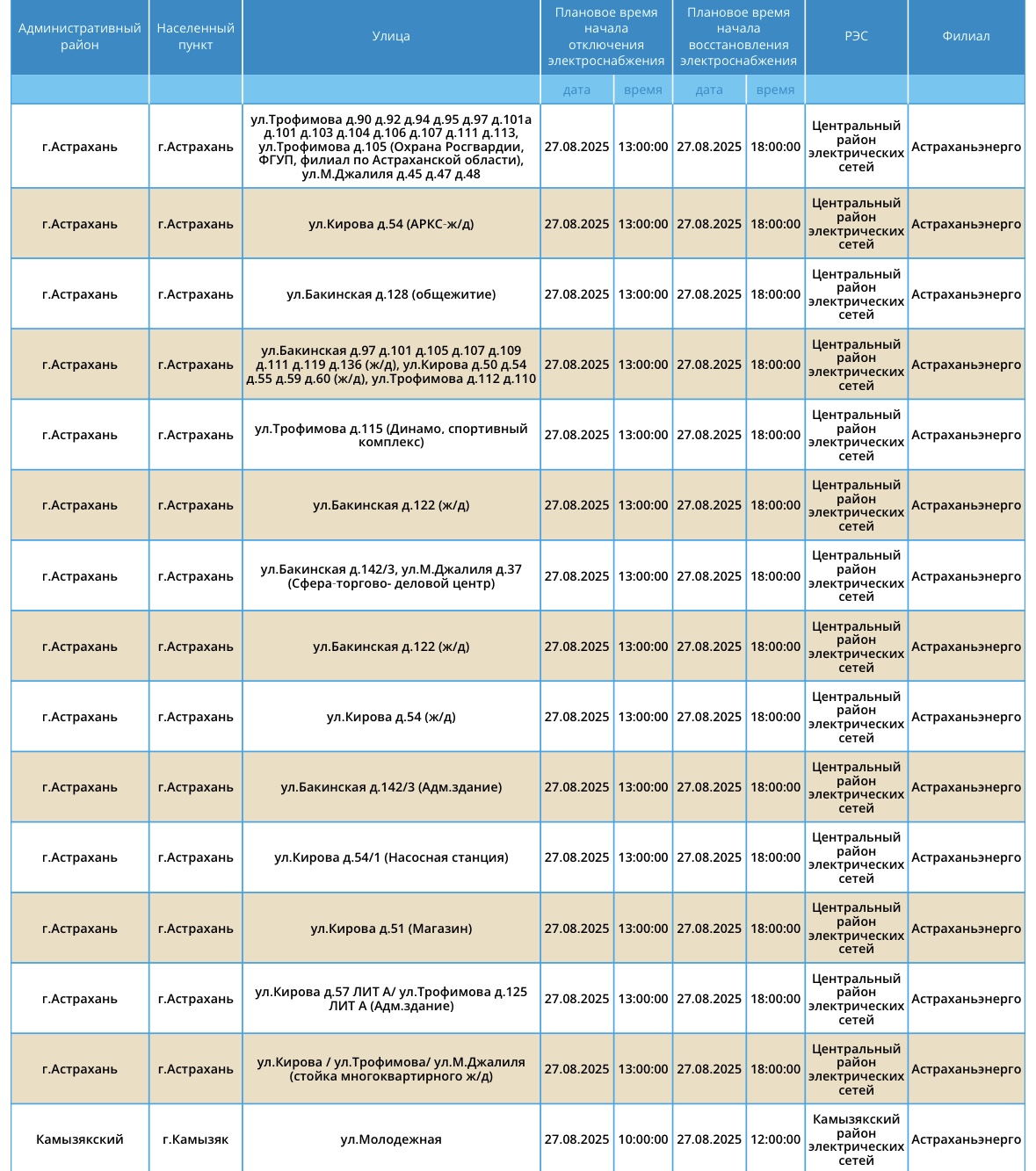 27 августа астраханцев ожидают отключения света26 августа 2025 года, 20:30
