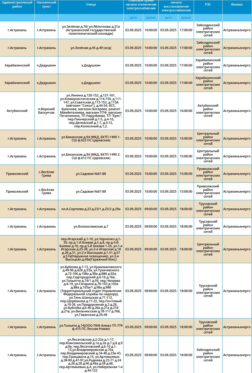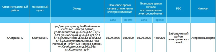 3 сентября сотни астраханцев останутся без света02 сентября 2025 года, 20:40