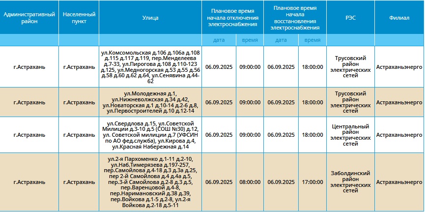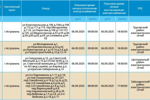 Завтра некоторые астраханцы останутся без света05 сентября 2025 года, 20:30