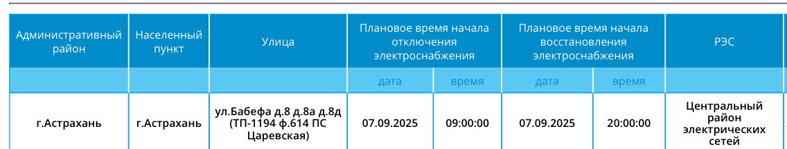 7 сентября некоторые астраханцы на 11 часов останутся без света06 сентября 2025 года, 18:30