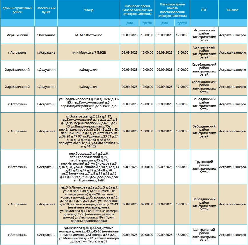 9 сентября в Астрахани и в двух районах области отключат свет08 сентября 2025 года, 20:41