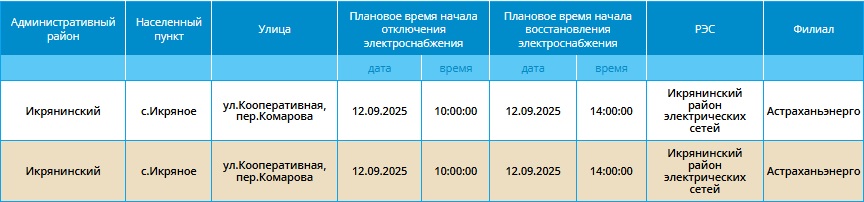 12 сентября жители Астраханской области останутся без света11 сентября 2025 года, 20:30