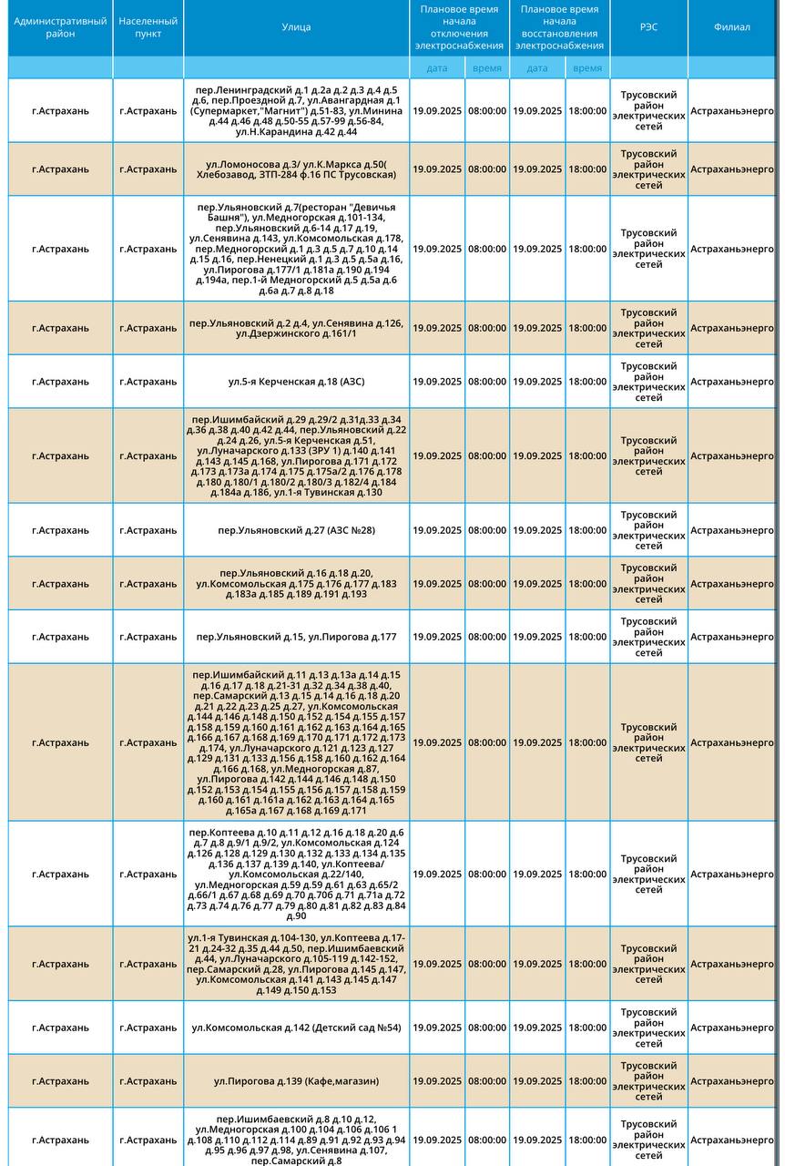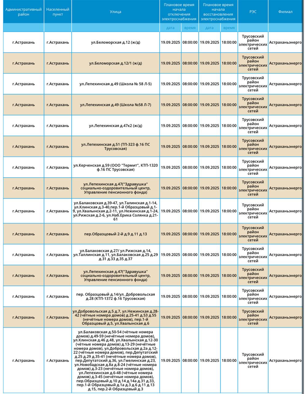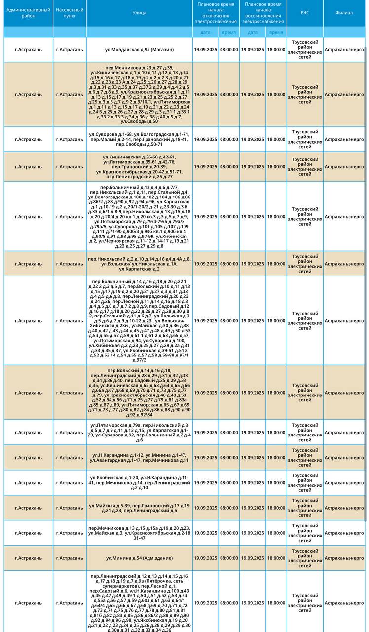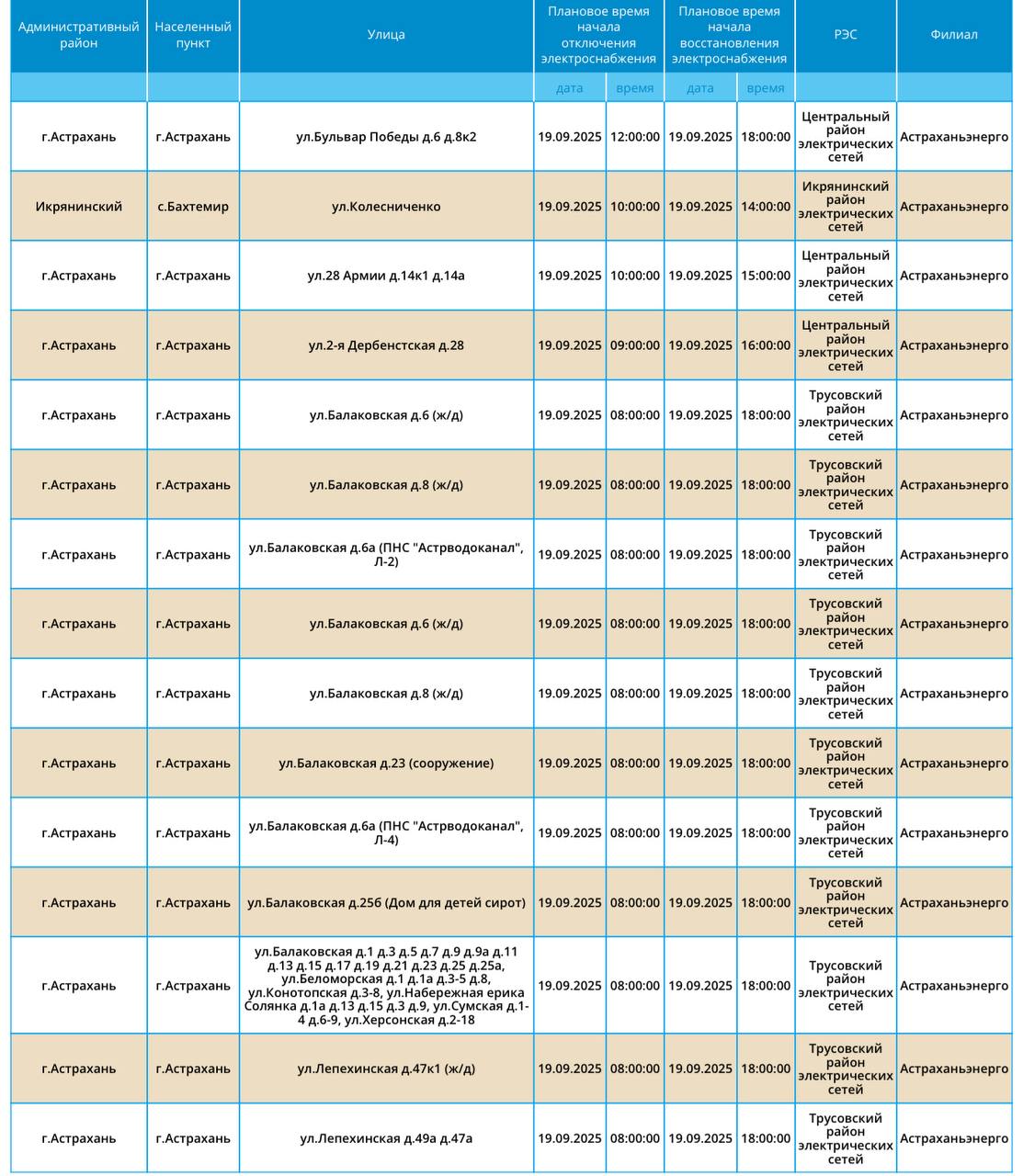19 сентября астраханцев ждут массовые отключения электроэнергии18 сентября 2025 года, 20:41