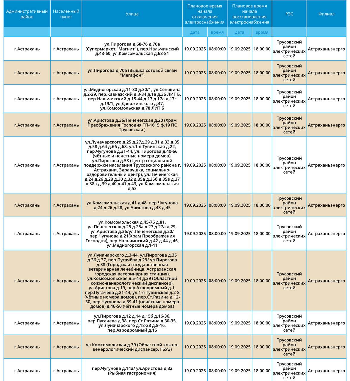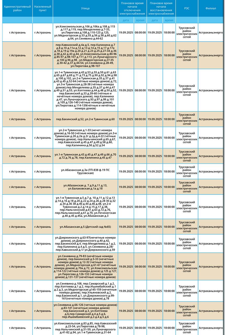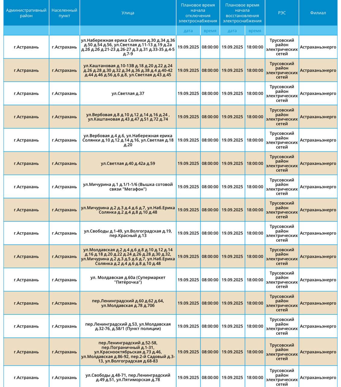 19 сентября астраханцев ждут массовые отключения электроэнергии18 сентября 2025 года, 20:41