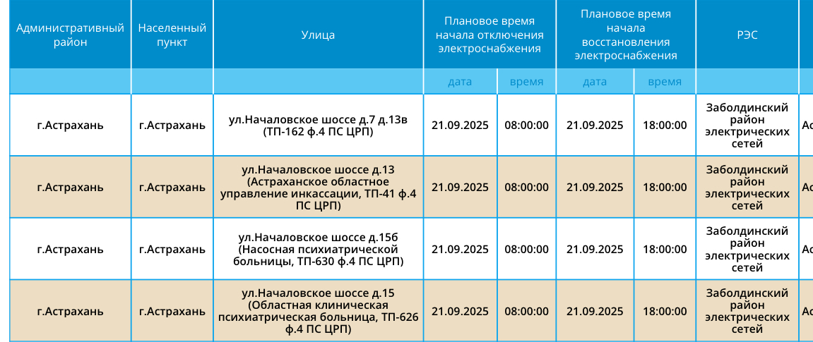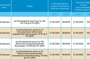 21 сентября некоторые астраханцы останутся без света20 сентября 2025 года, 18:30