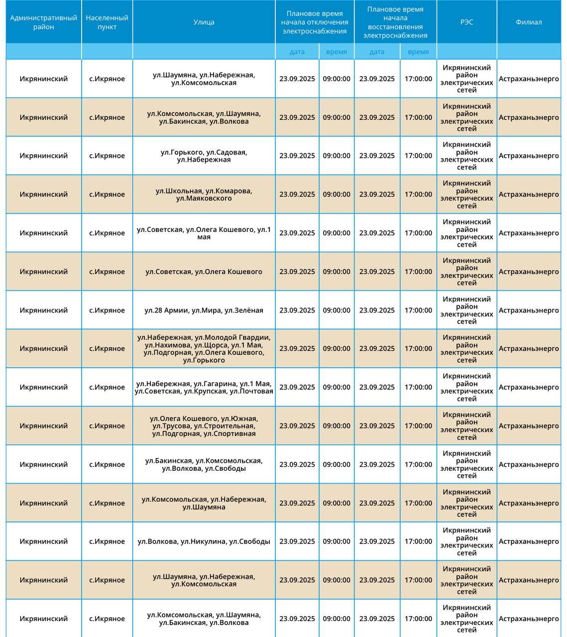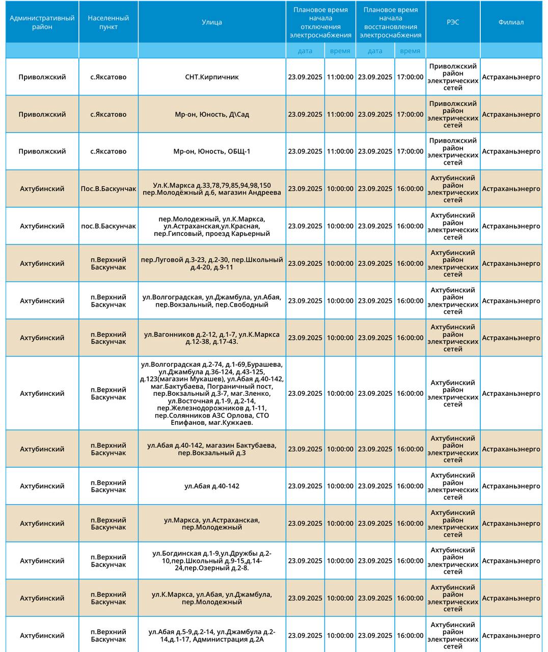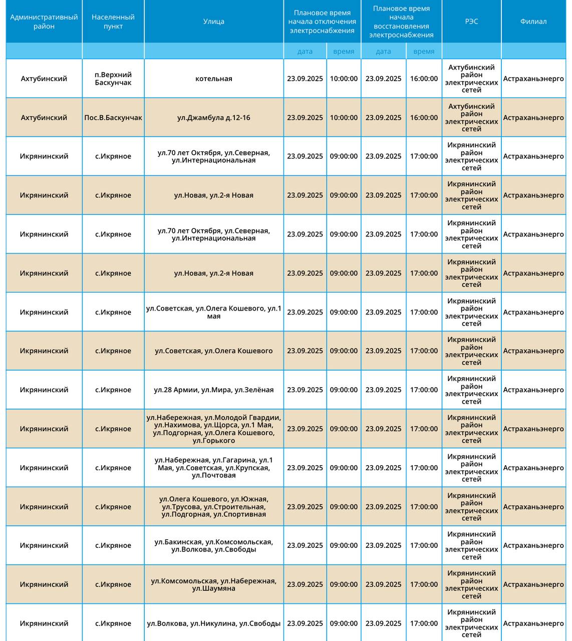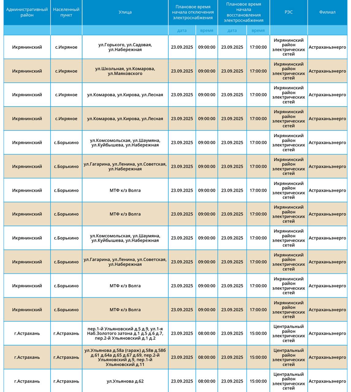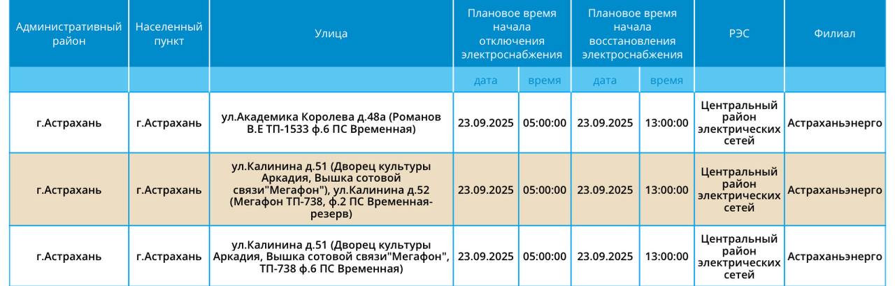 Завтра в Астраханской области пройдут массовые отключения света22 сентября 2025 года, 20:30
