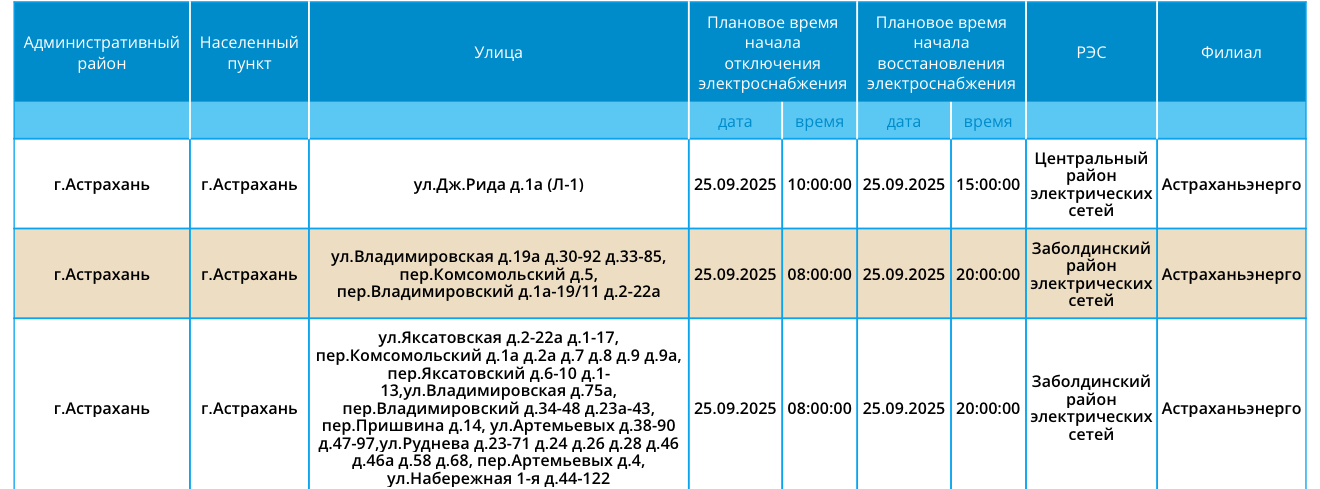 25 сентября некоторые астраханцы останутся без электроэнергии24 сентября 2025 года, 20:30
