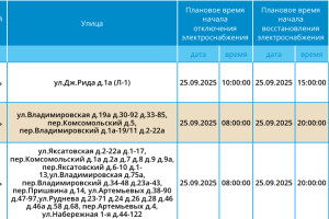 Завтра, 25 сентября, в Астраханской области пройдут плановые отключения света. Об этом сообщили сотрудники ПАО «Россети Юг». Отключения коснутся самого областного центра. Подробнее со списком адресов можно ознакомиться на фото ниже: А информацию обо всех коммунальных проблемах нашего города вы можете найти здесь. На этом сайте, в режиме реального времени, вы можете наблюдать за отключениями света, воды и т.д. Если отключения произошли внепланово, звоните по телефонам, которые указаны ниже: