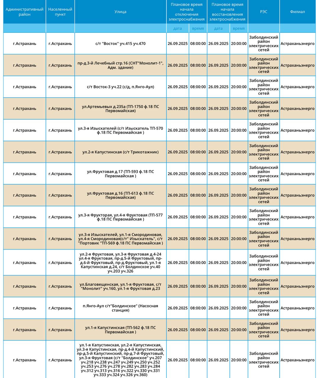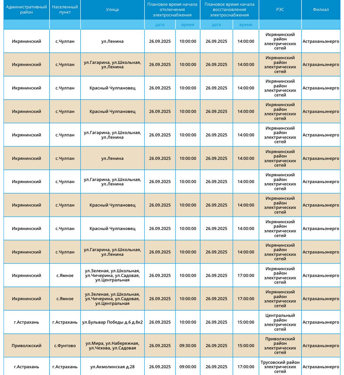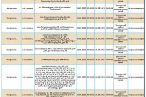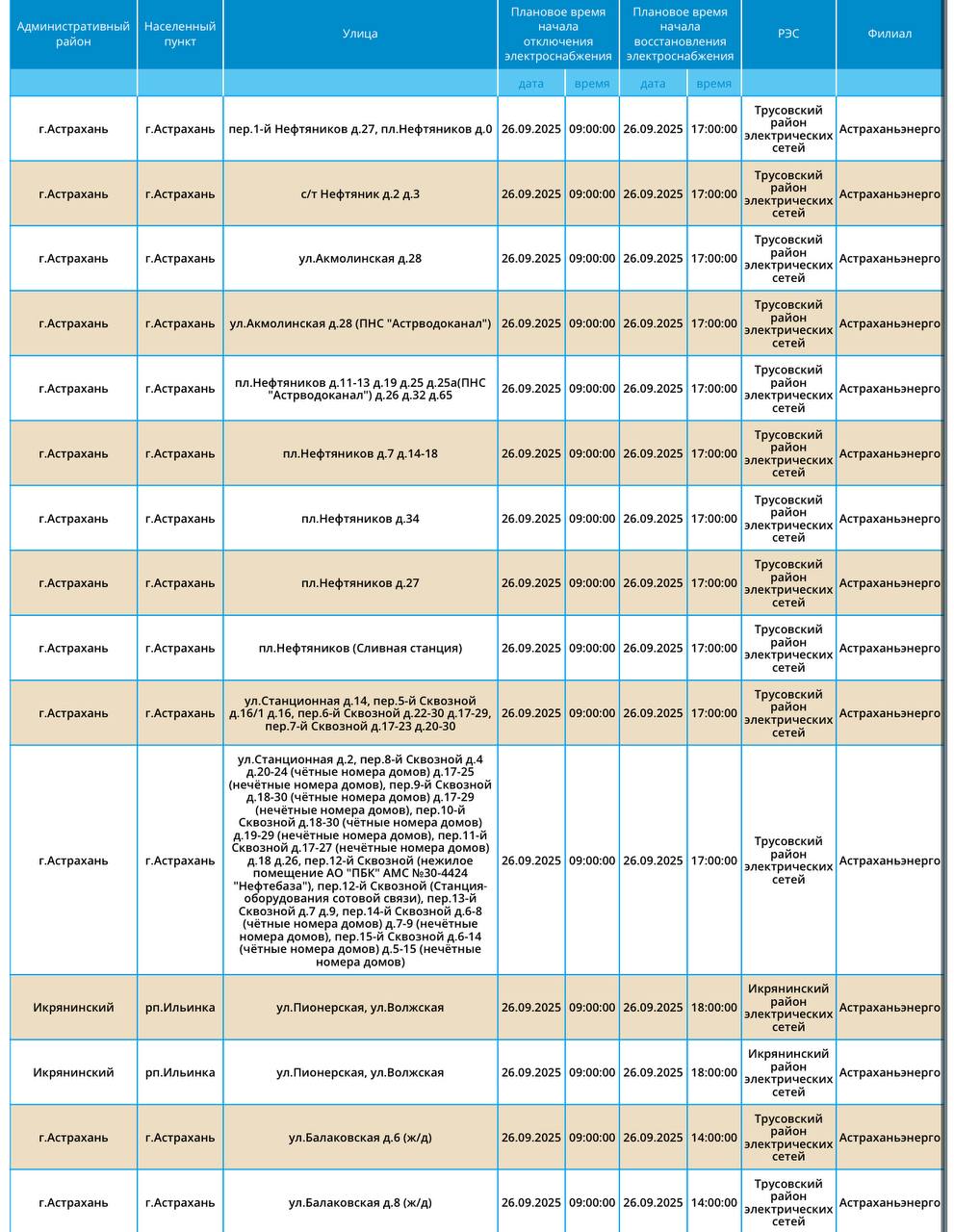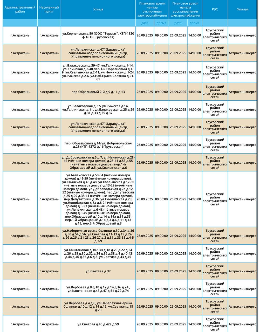26 сентября в Астрахани пройдут очередные массовые отключения света25 сентября 2025 года, 20:31
