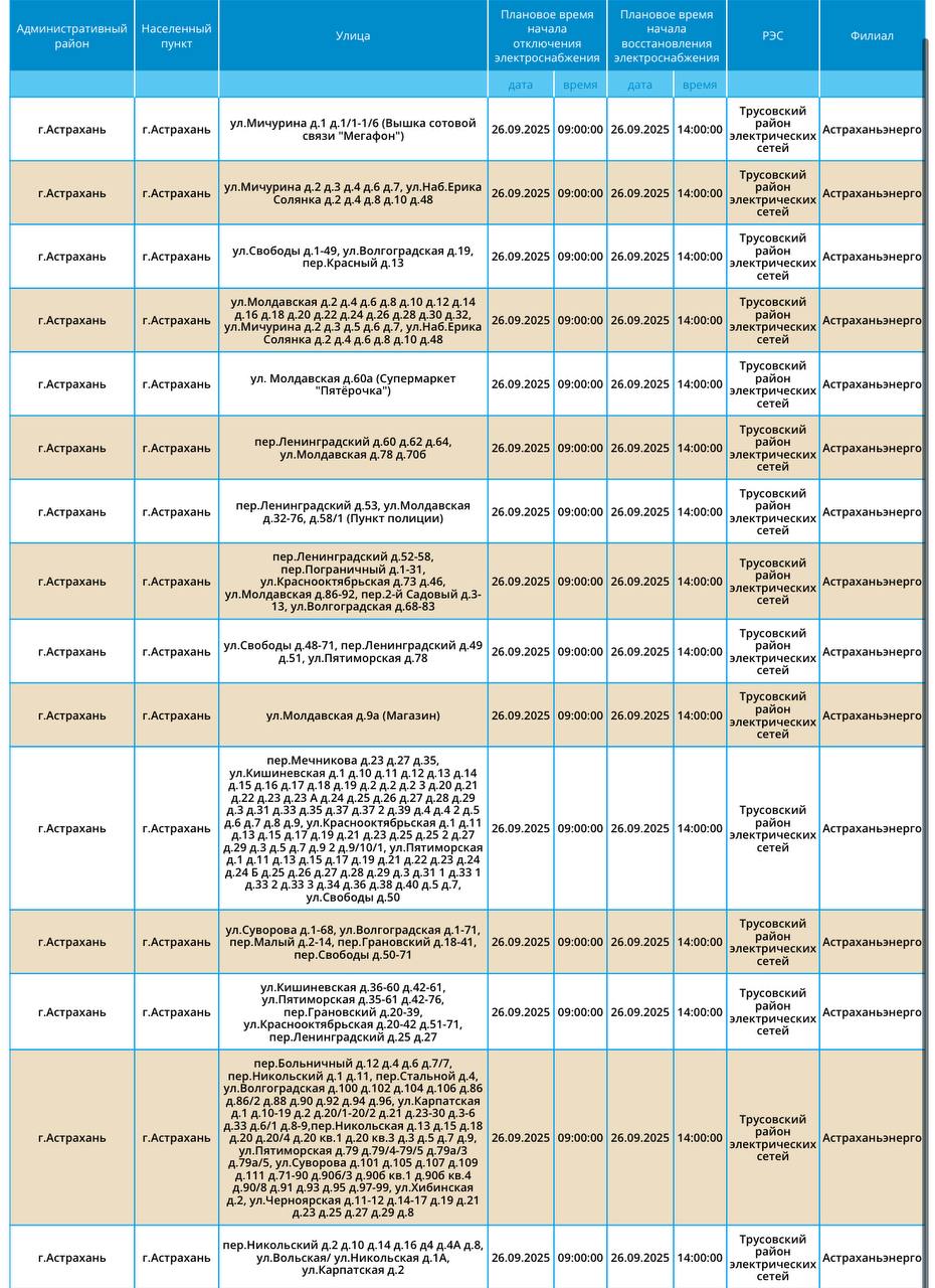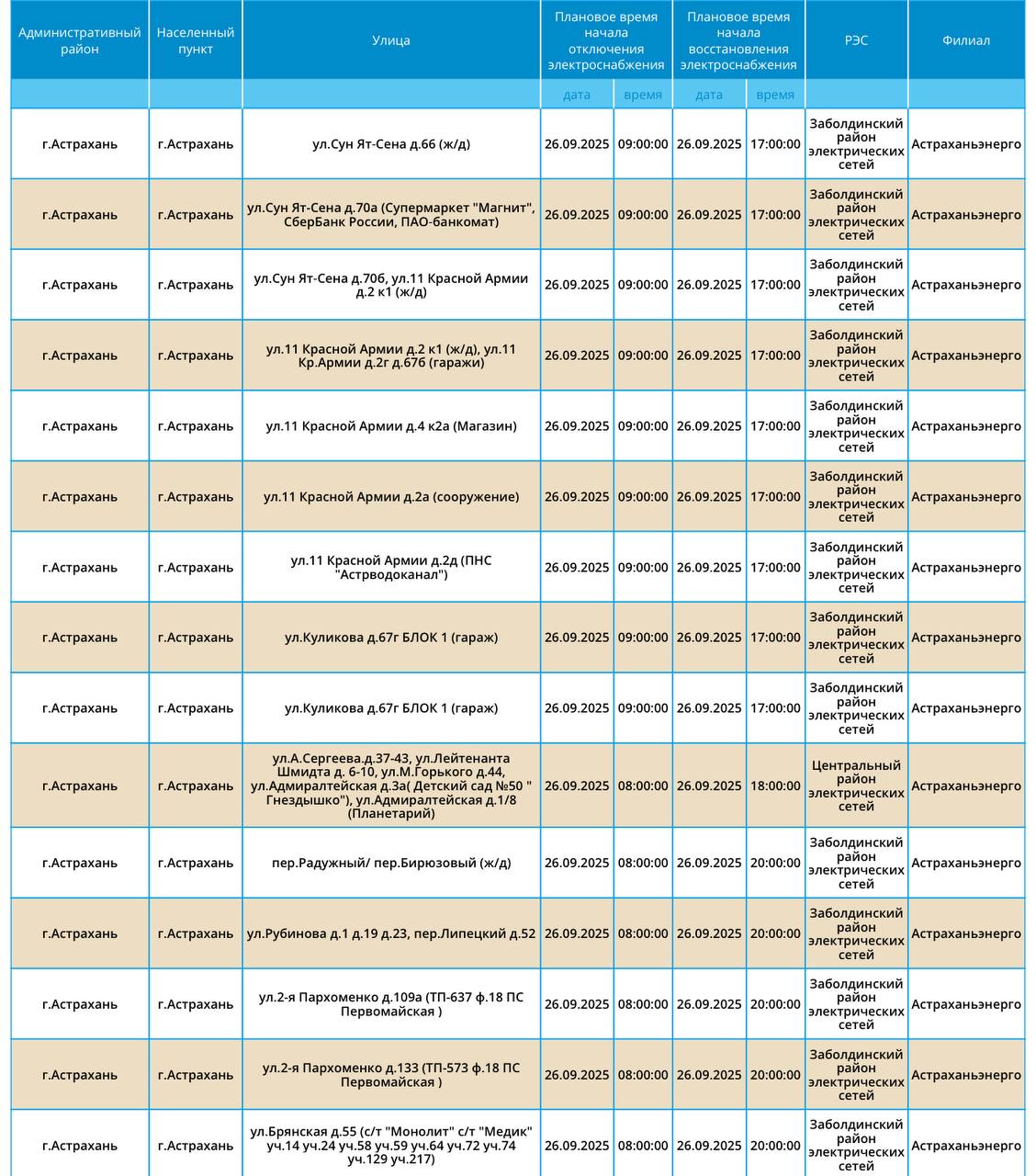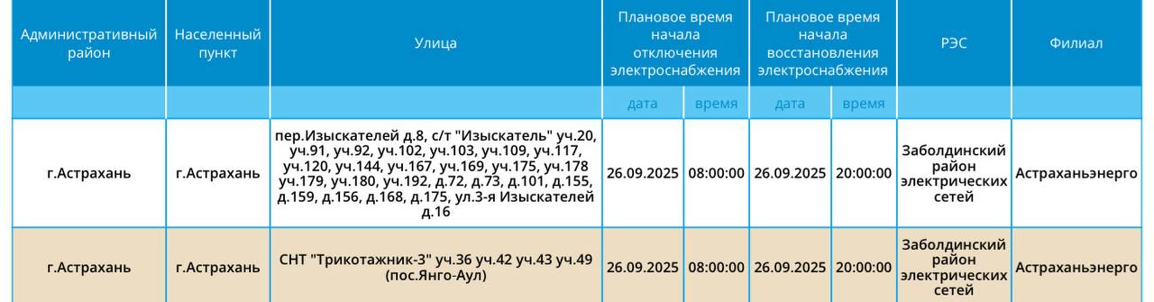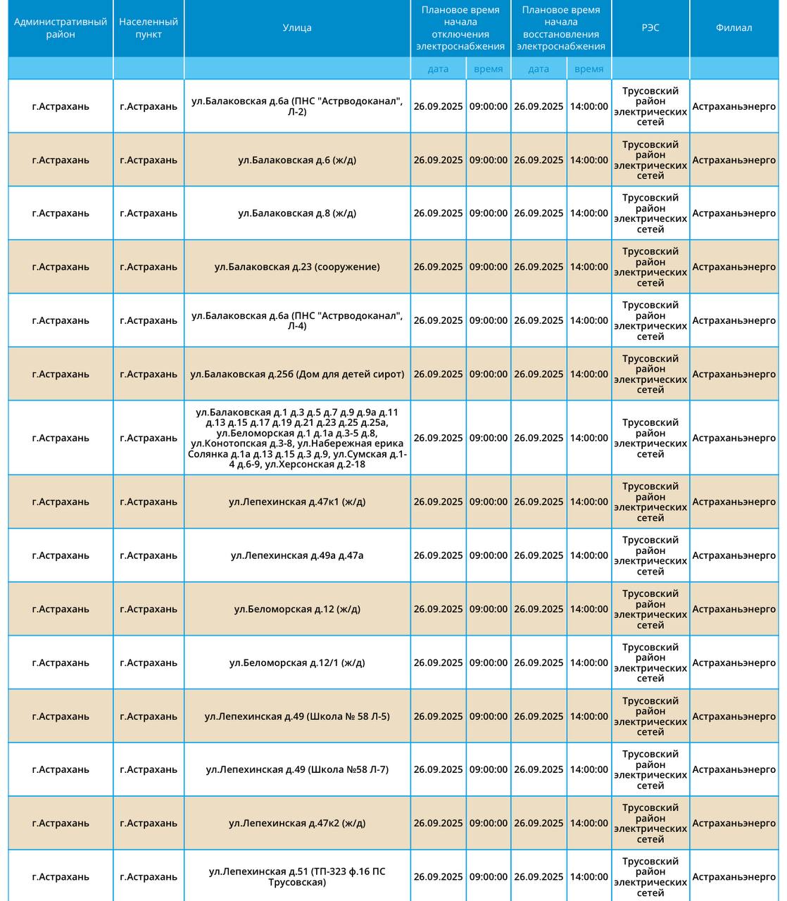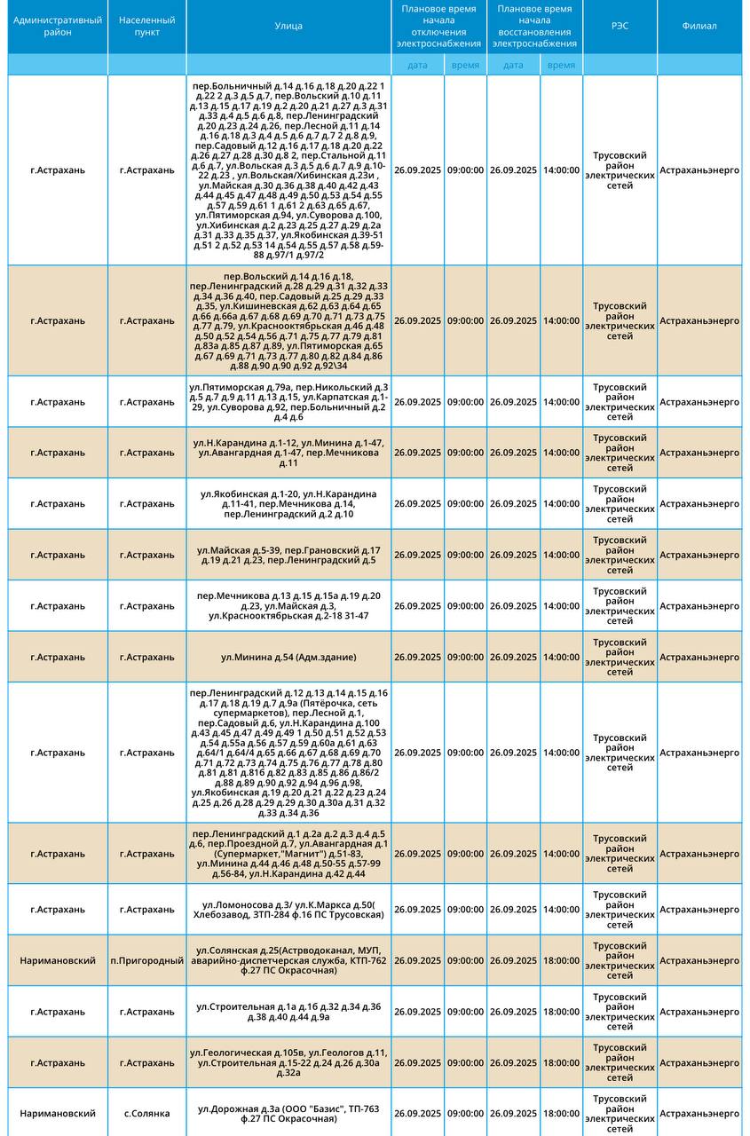 26 сентября в Астрахани пройдут очередные массовые отключения света25 сентября 2025 года, 20:31