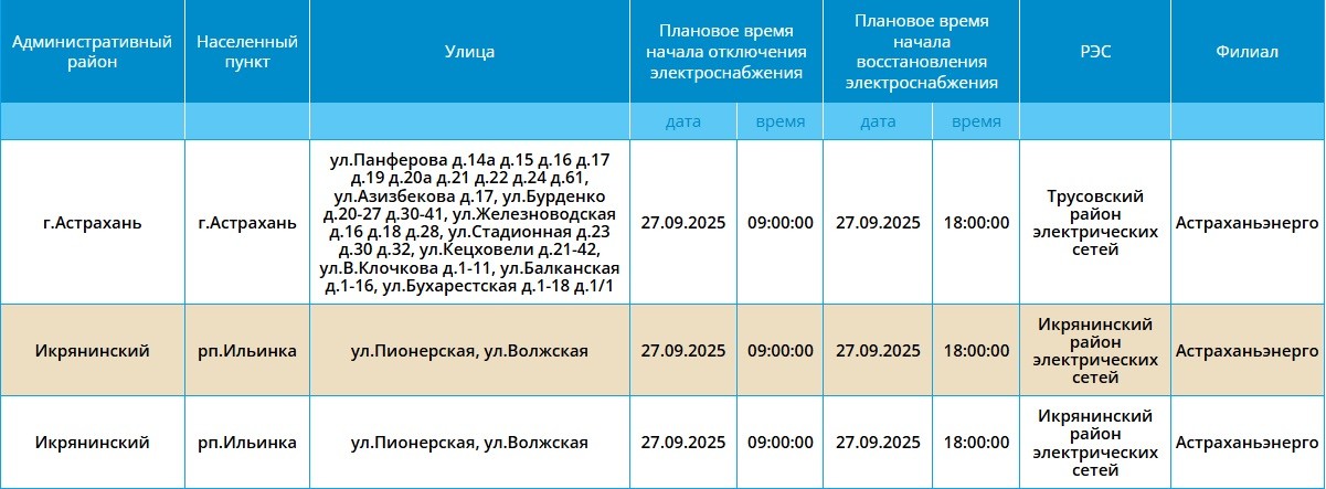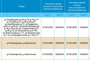 27 сентября в Астраханской области некоторые абоненты останутся без электроэнергии26 сентября 2025 года, 20:41