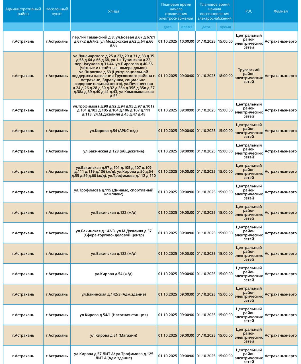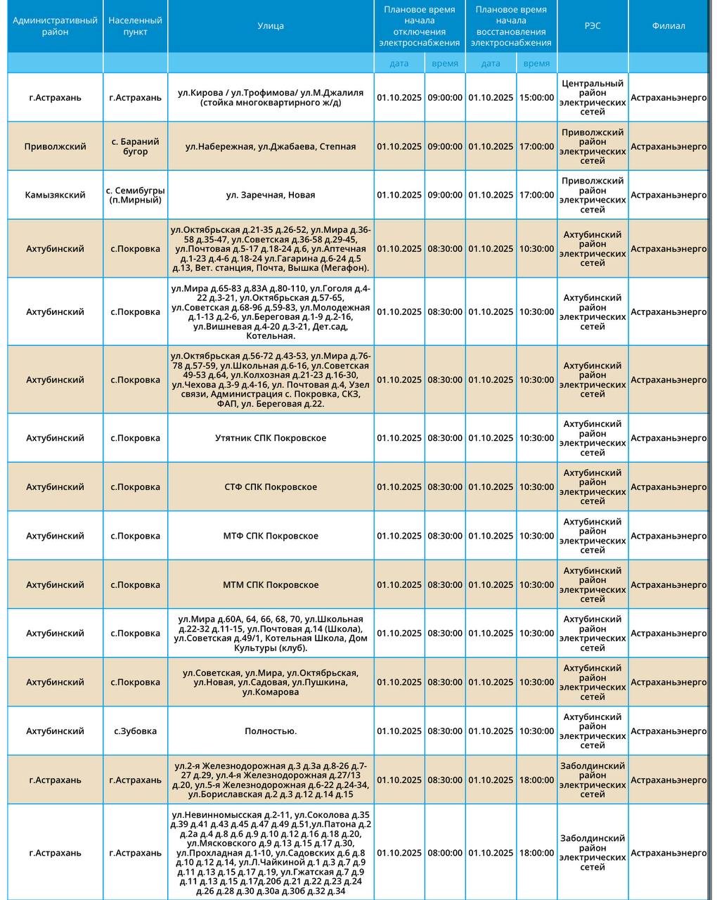 1 октября многие астраханцы останутся без света30 сентября 2025 года, 20:30