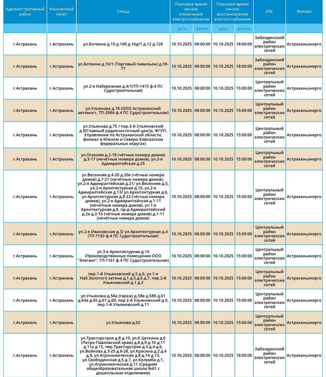 10 октября некоторые астраханцы останутся без электроэнергии09 октября 2025 года, 20:31