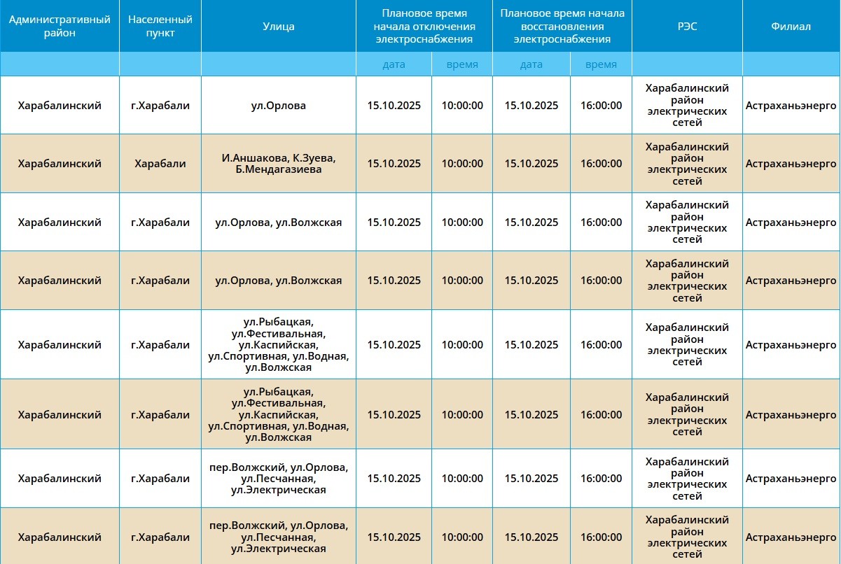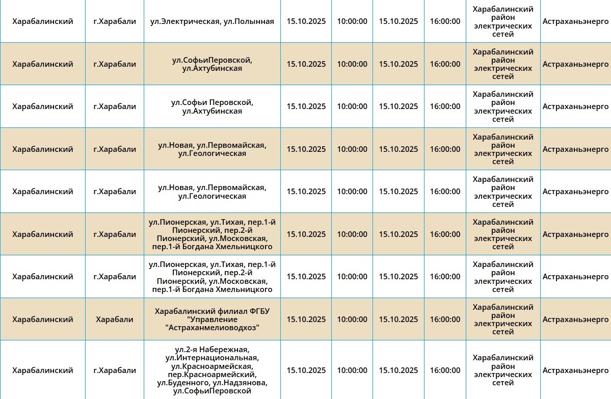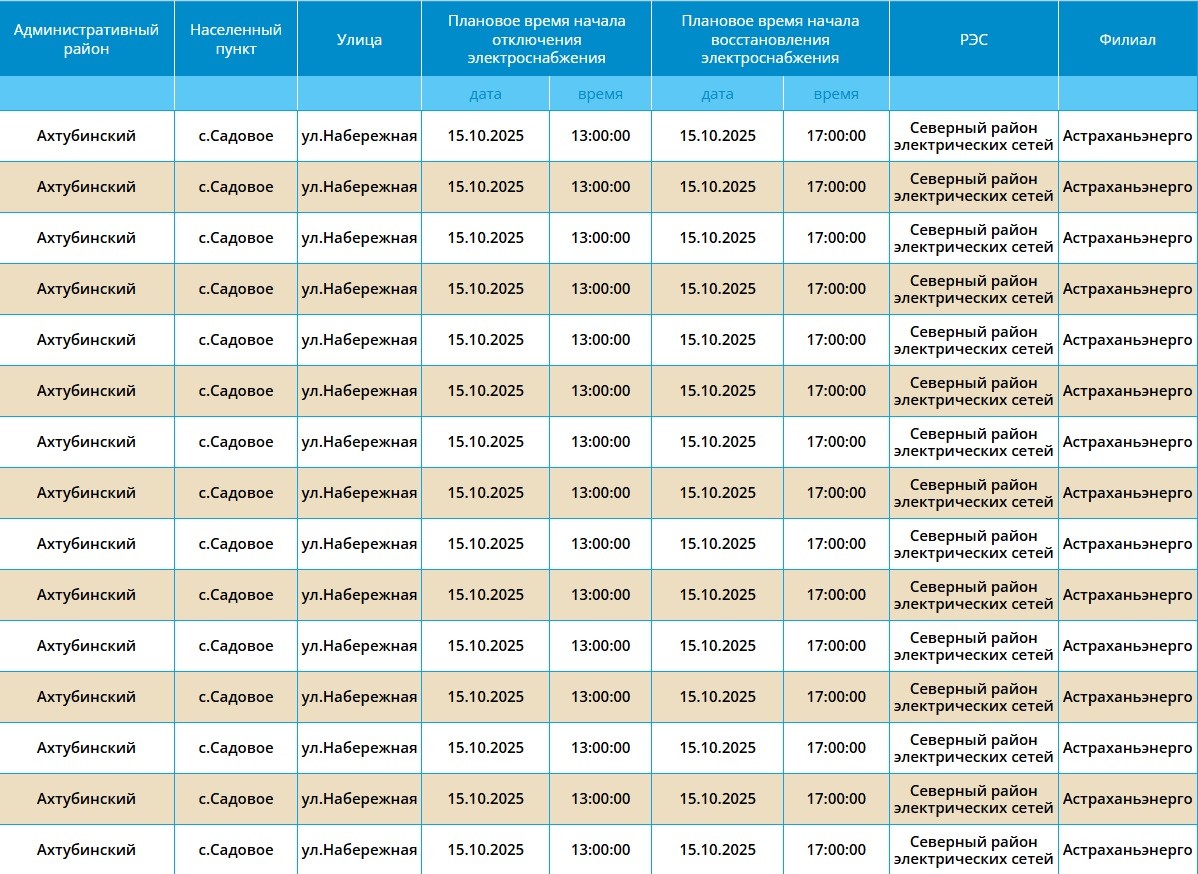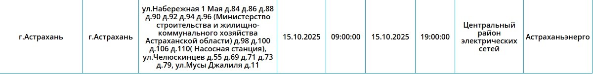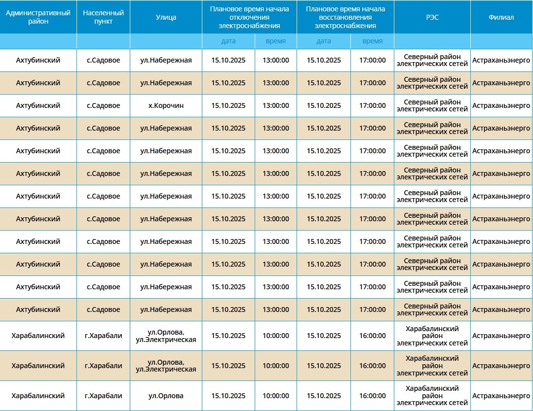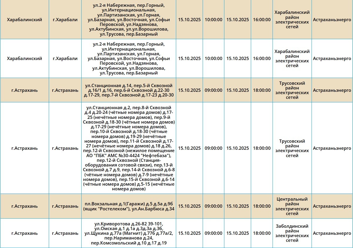 15 октября в Астраханской области пройдут плановые отключения света14 октября 2025 года, 20:40