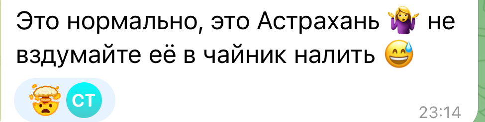 В Астрахань на съемки сериала «Чудо» приехала видеоблогер и актриса Ида Галич. Съемки проходят в Наримановском районе, однако «волшебство» поджидало телеведущую уже в отеле. Ида Галич хотела принять ванную, но была удивлена, когда из крана потекла не обычная прозрачная вода, а пиво или, например, шампанское. «Базовое и простое дело, которое я не могу себе позволить себе в городе Астрахань. Почему из-под крана идет пиво?» - интересуется блогер. Астраханцы к такому давно привыкли, поэтому поспешили успокоить актрису. Но приятного в таком мало. И это при том, что вода в Астрахани соответствует нормативам, а это значит, что абсолютно безопасна для граждан. Об этом неоднократно сообщали в «Астрводоканале» и администрации города. В эти слова поверить тяжело, но выхода все равно нет. Не покупать же бутыли с водой для того, чтобы сходить в душ. Да и вообще Галич ждали сплошные неприятности в Астрахани. «Я просто хочу один день, чтобы все прошло гладенько. Без ржавой воды, без застревания в лифте (я еще не рассказала), без тупых информационных вбросов и так далее». - рассказала актриса. С лифтами у нас проблема, это правда. Поэтому, как справедливо отметили комментаторы, Иде Галич переживать не стоит - это обычный день из жизни любого астраханца. Прославились, ничего не скажешь. Астраханцев возмутил «чай» из-под крана с горячей водой